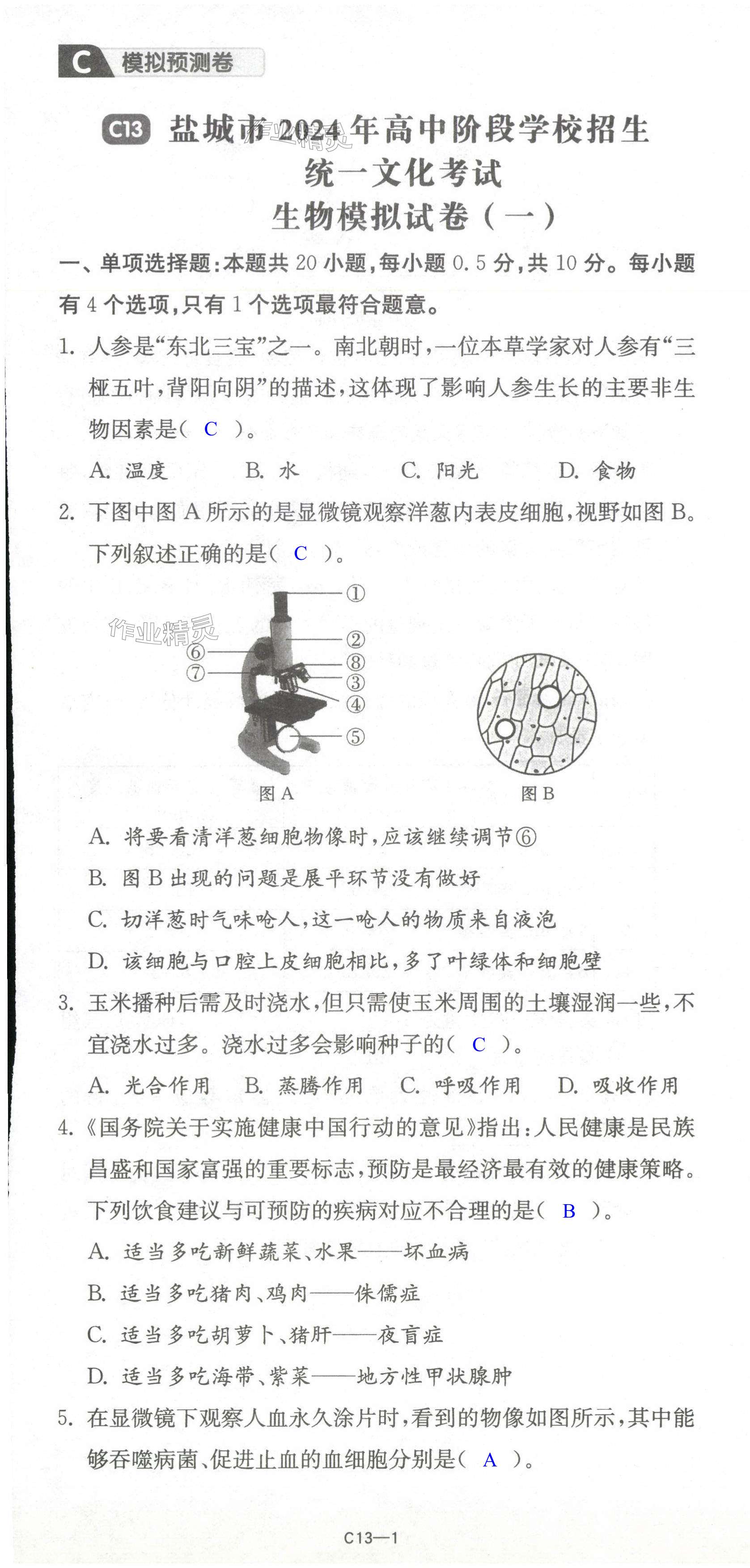 注:目前有些书本章节名称可能整理的还不是很完善,但都是按照顺序排列的,请同学们按照顺序仔细查找。练习册 2024年春雨教育考必胜中考试卷精选生物盐城专版 答案主要是用来给同学们做完题方便对答案用的,请勿直接抄袭。