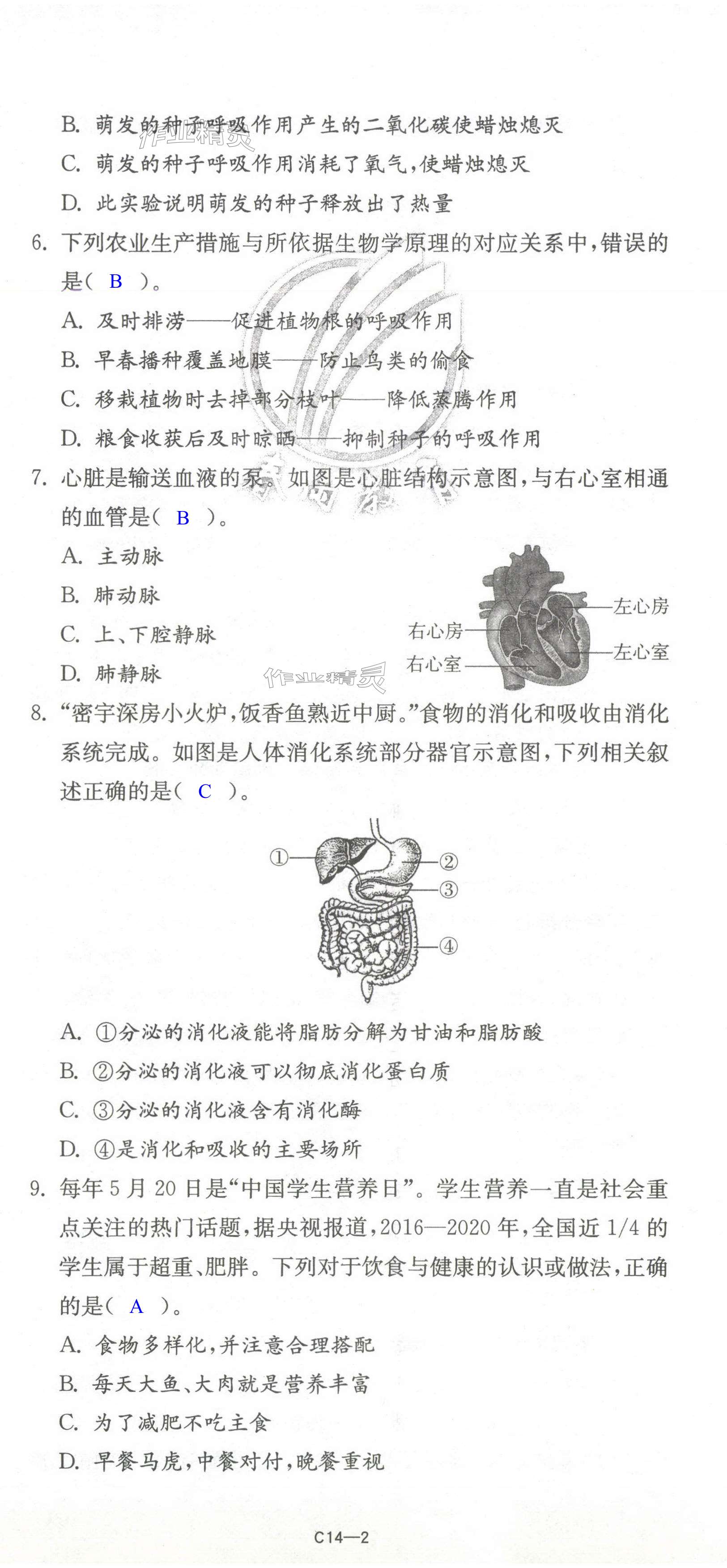注:目前有些书本章节名称可能整理的还不是很完善,但都是按照顺序排列的,请同学们按照顺序仔细查找。练习册 2024年春雨教育考必胜中考试卷精选生物盐城专版 答案主要是用来给同学们做完题方便对答案用的,请勿直接抄袭。