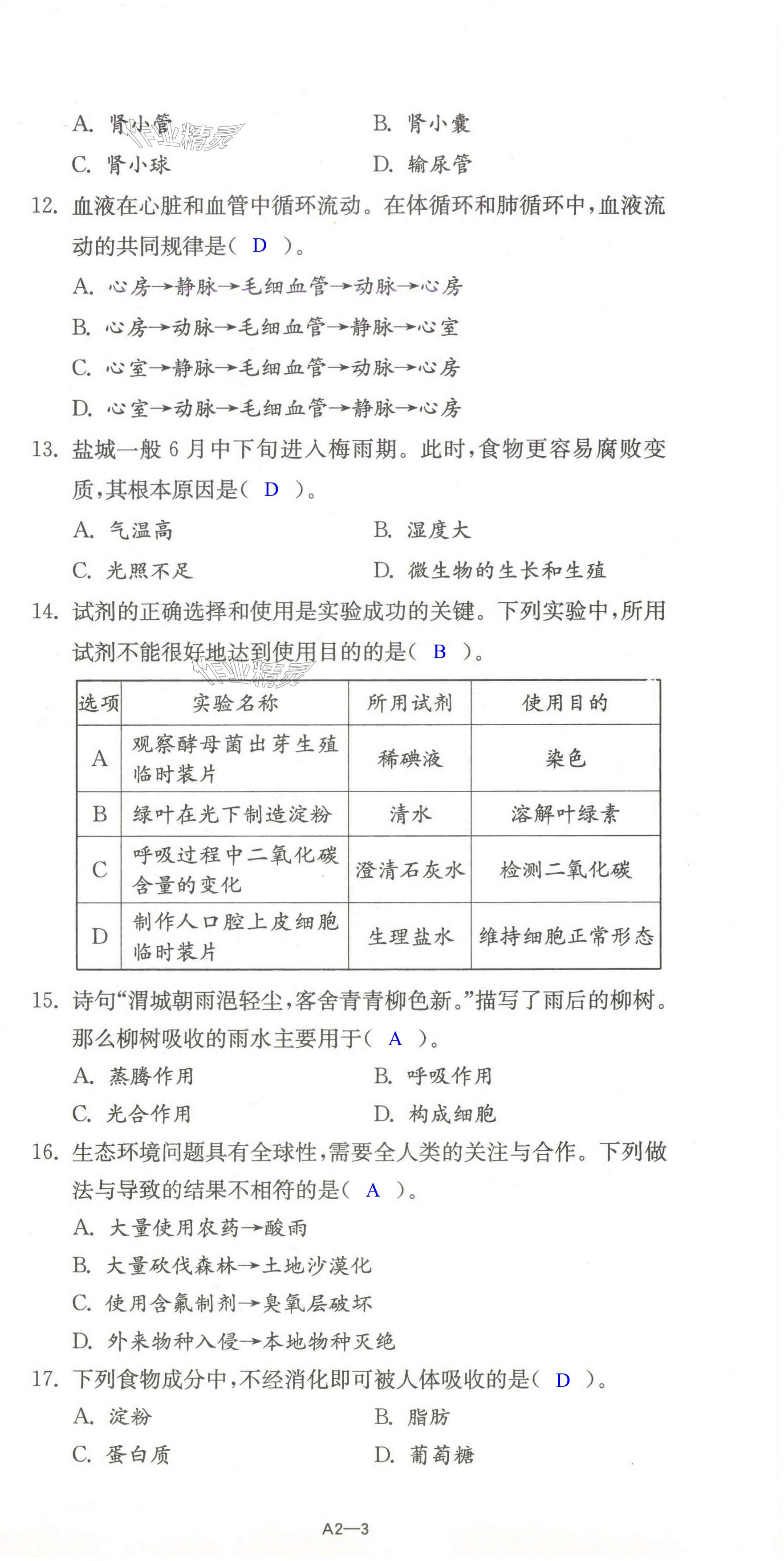 注:目前有些书本章节名称可能整理的还不是很完善,但都是按照顺序排列的,请同学们按照顺序仔细查找。练习册 2024年春雨教育考必胜中考试卷精选生物盐城专版 答案主要是用来给同学们做完题方便对答案用的,请勿直接抄袭。