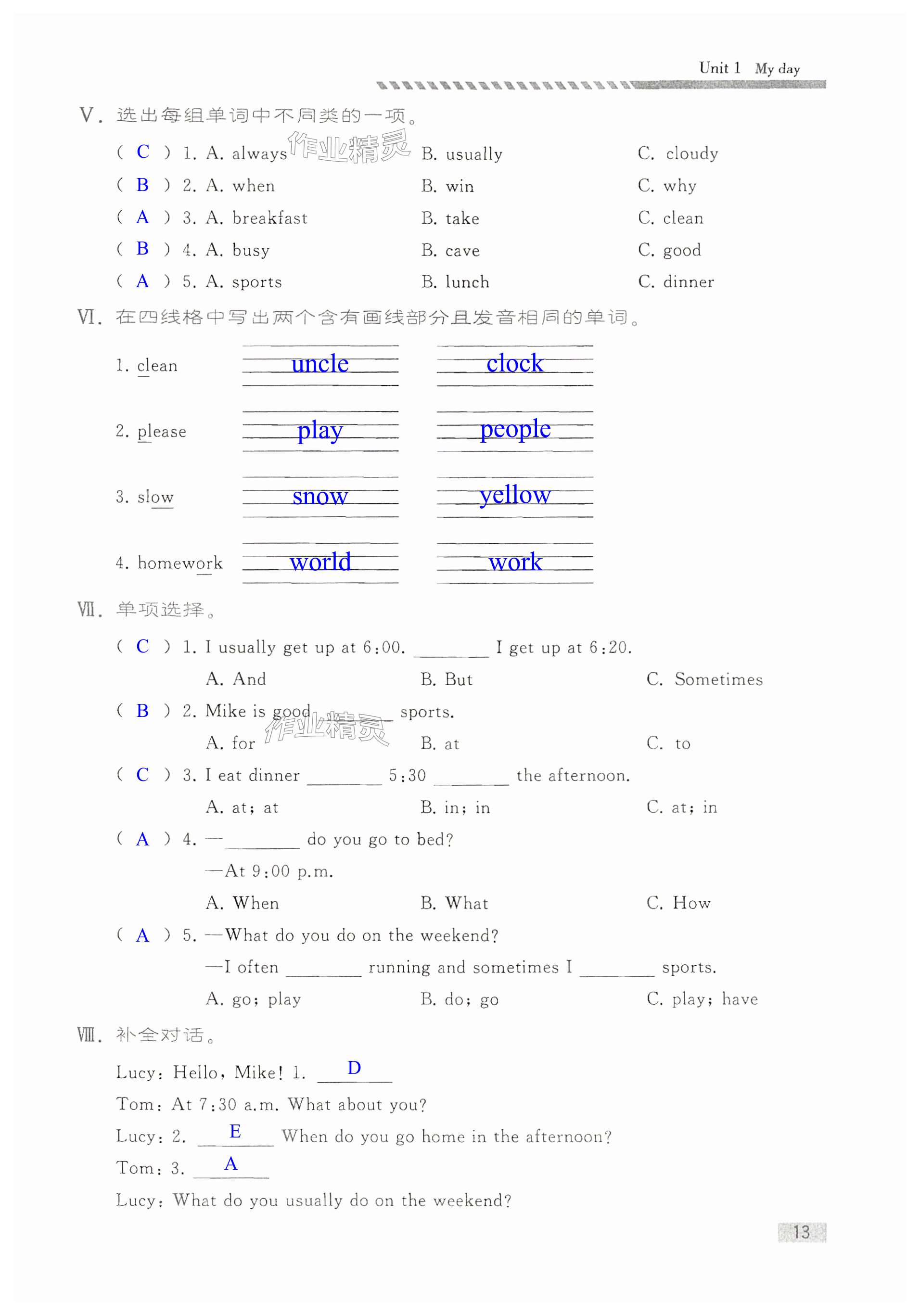 注:目前有些书本章节名称可能整理的还不是很完善,但都是按照顺序排列的,请同学们按照顺序仔细查找。练习册 2024年同步轻松练习五年级英语下册人教版贵州专版 答案主要是用来给同学们做完题方便对答案用的,请勿直接抄袭。