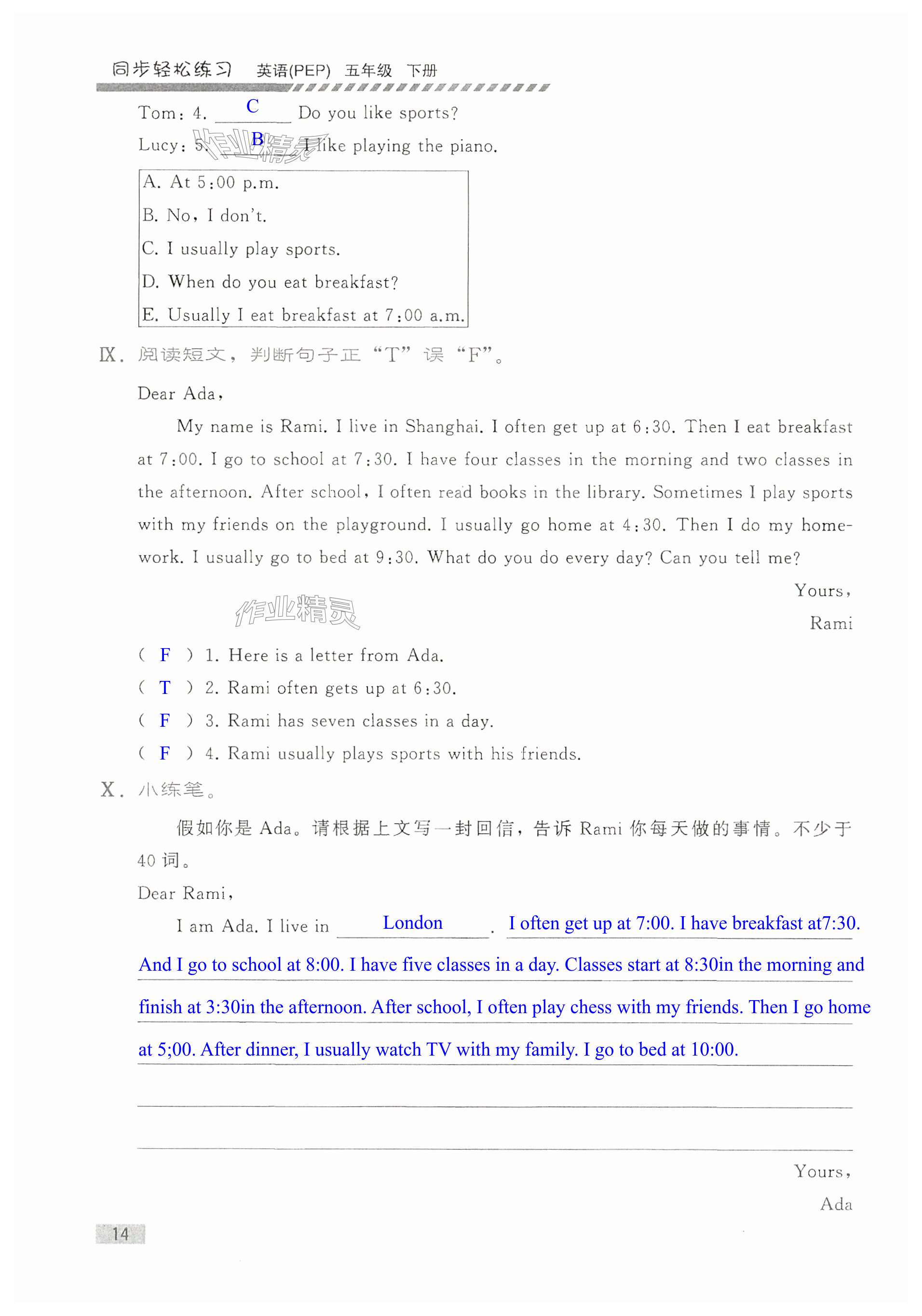 注:目前有些书本章节名称可能整理的还不是很完善,但都是按照顺序排列的,请同学们按照顺序仔细查找。练习册 2024年同步轻松练习五年级英语下册人教版贵州专版 答案主要是用来给同学们做完题方便对答案用的,请勿直接抄袭。