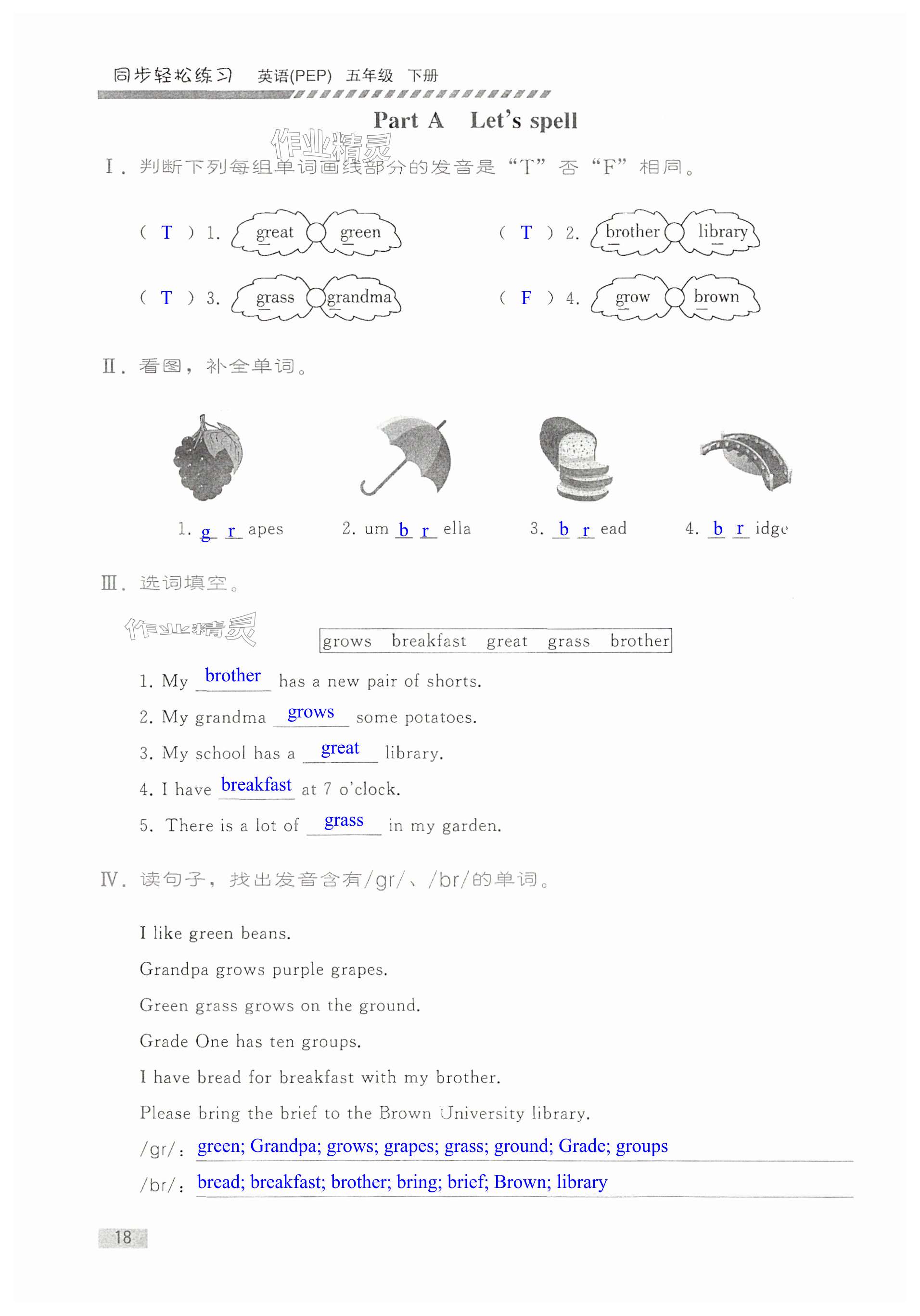 注:目前有些书本章节名称可能整理的还不是很完善,但都是按照顺序排列的,请同学们按照顺序仔细查找。练习册 2024年同步轻松练习五年级英语下册人教版贵州专版 答案主要是用来给同学们做完题方便对答案用的,请勿直接抄袭。