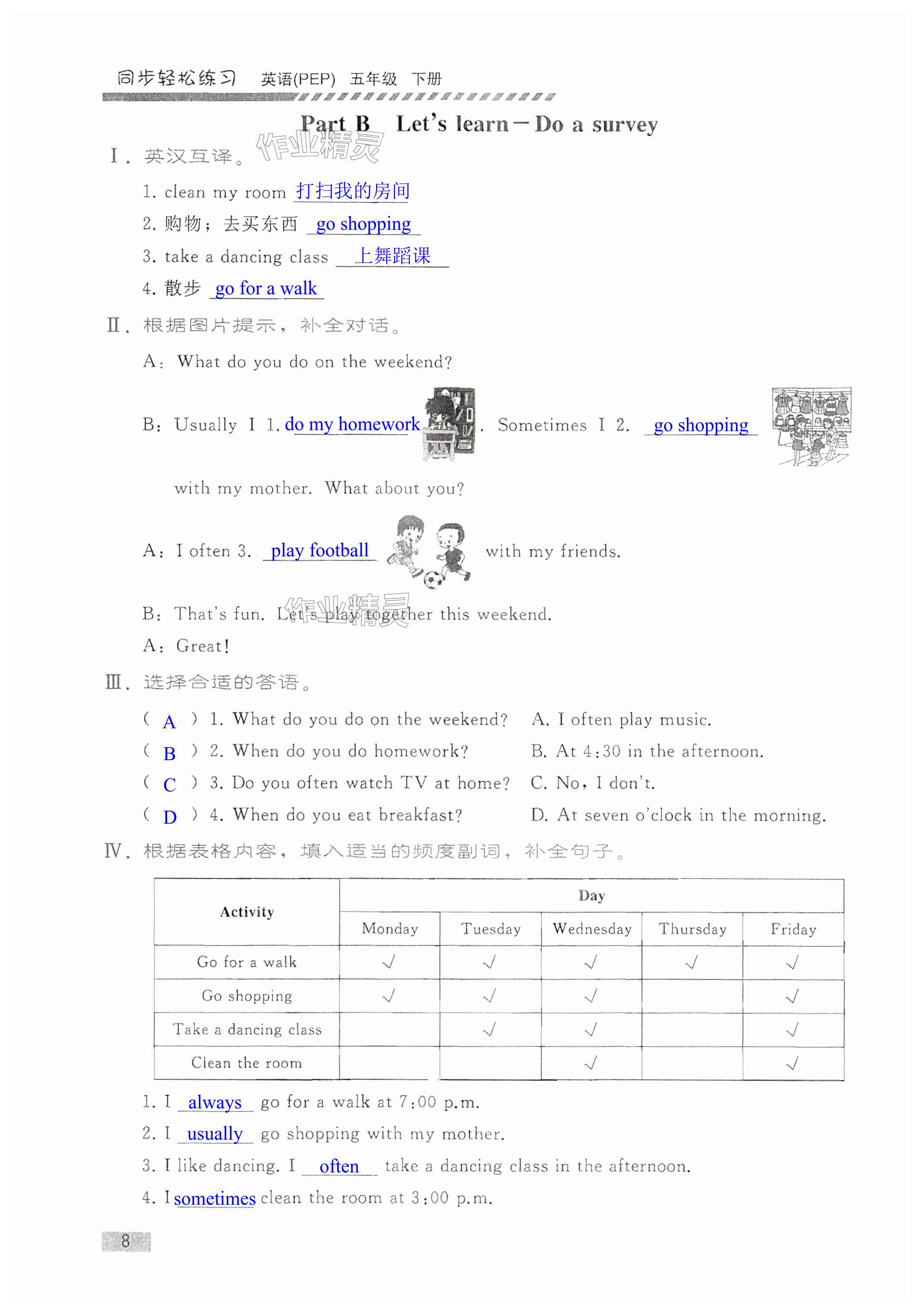注:目前有些书本章节名称可能整理的还不是很完善,但都是按照顺序排列的,请同学们按照顺序仔细查找。练习册 2024年同步轻松练习五年级英语下册人教版贵州专版 答案主要是用来给同学们做完题方便对答案用的,请勿直接抄袭。