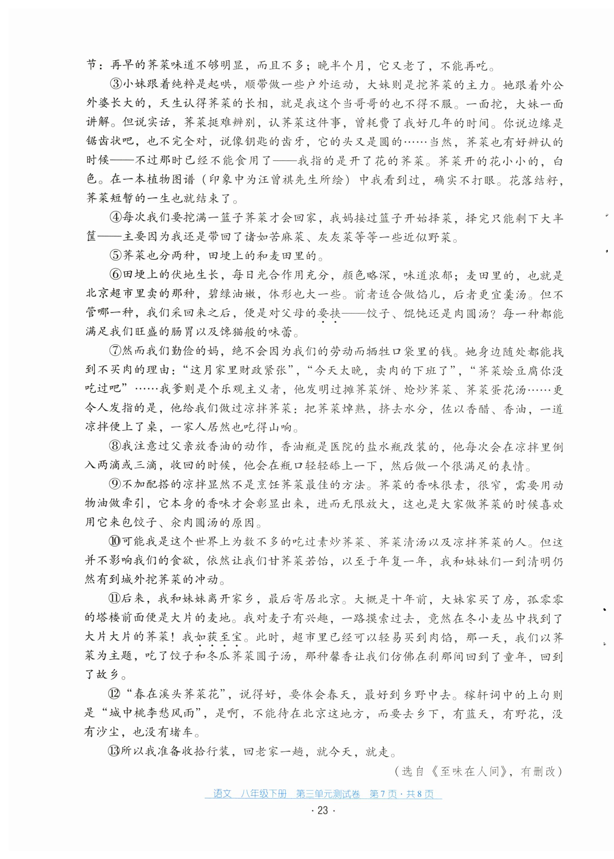 2024年云南省标准教辅优佳学案配套测试卷八年级语文下册人教版