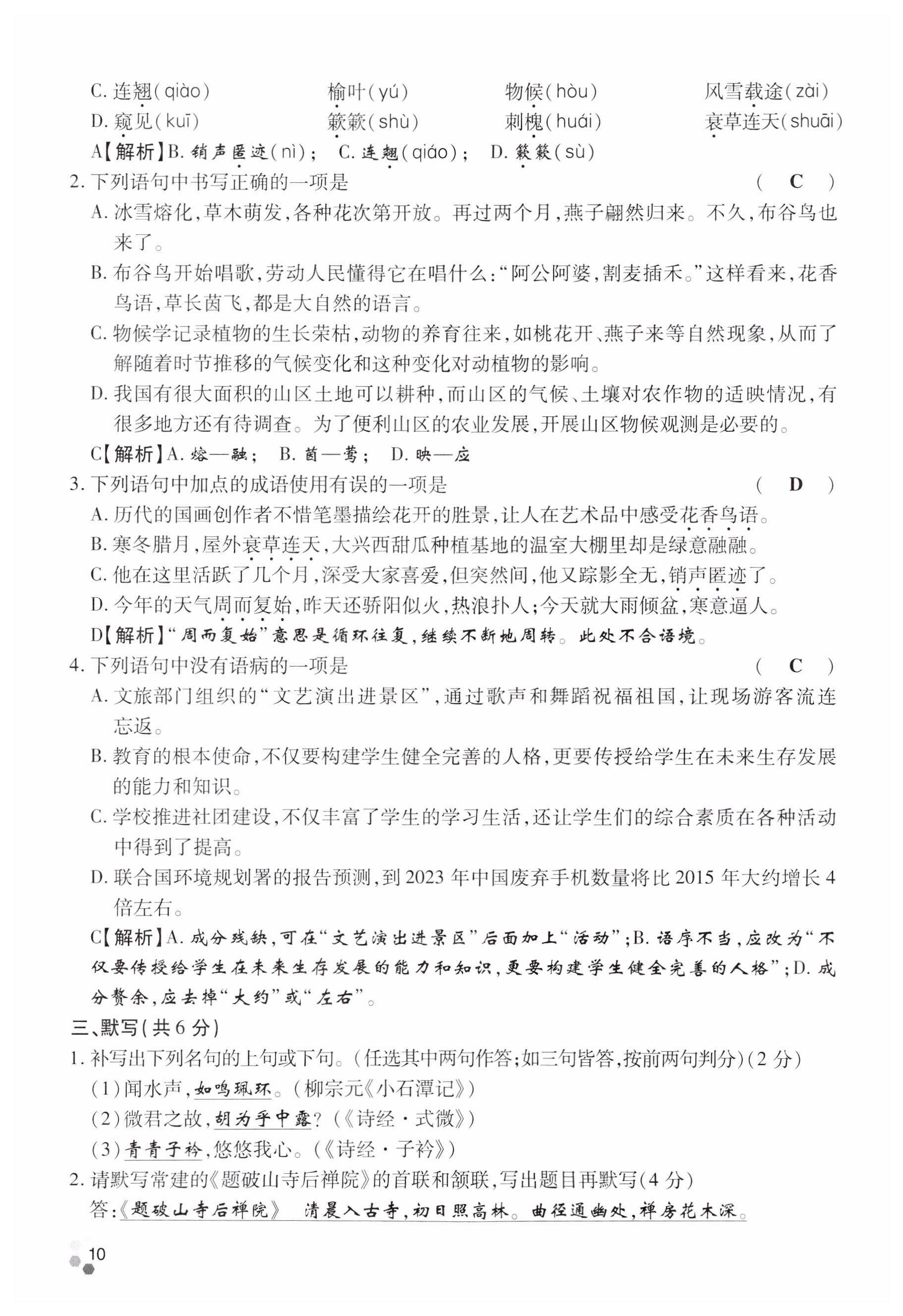 注:目前有些书本章节名称可能整理的还不是很完善,但都是按照顺序排列的,请同学们按照顺序仔细查找。练习册 2024年学典四川八年级语文下册人教版成都专版 答案主要是用来给同学们做完题方便对答案用的,请勿直接抄袭。