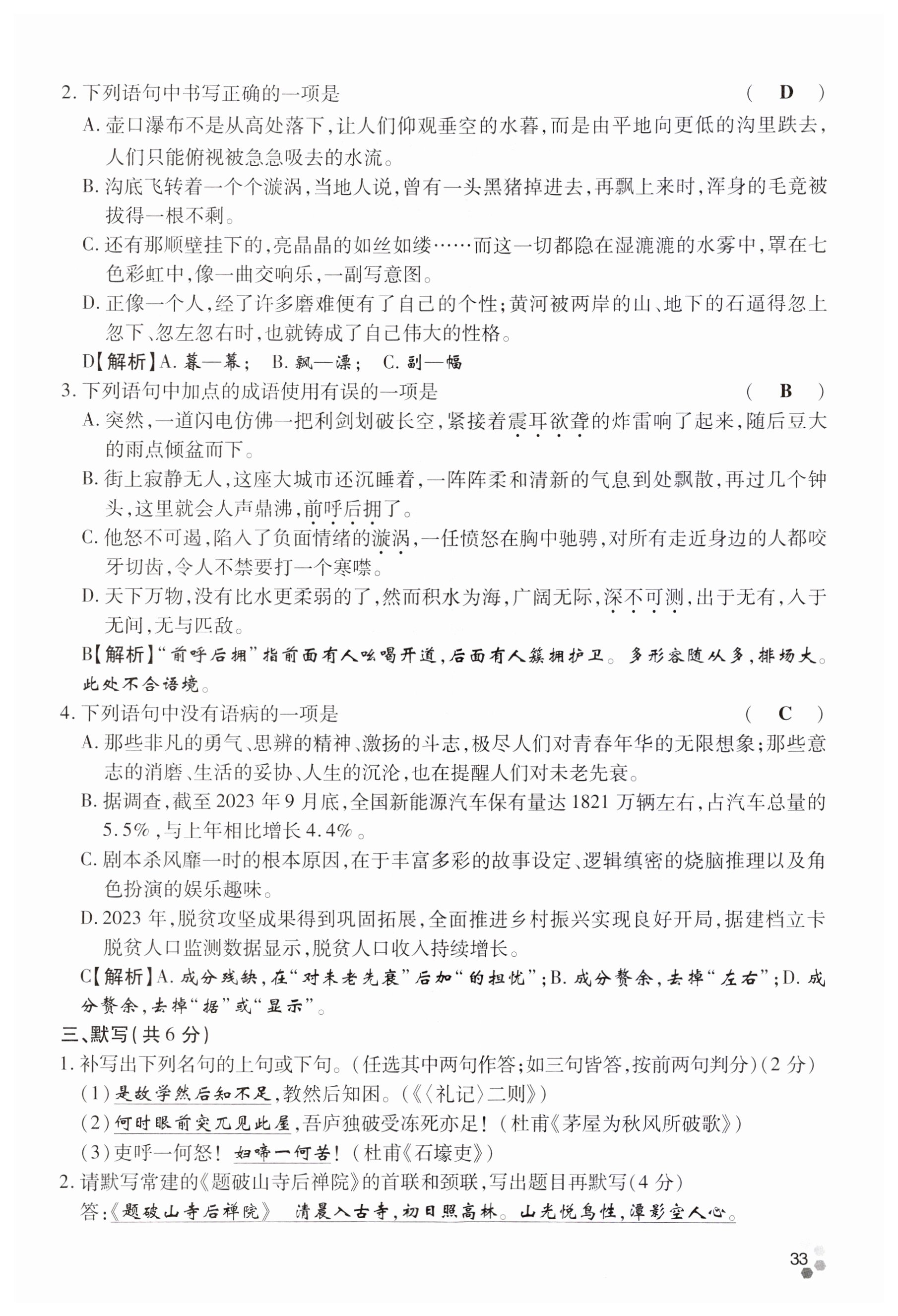 注:目前有些书本章节名称可能整理的还不是很完善,但都是按照顺序排列的,请同学们按照顺序仔细查找。练习册 2024年学典四川八年级语文下册人教版成都专版 答案主要是用来给同学们做完题方便对答案用的,请勿直接抄袭。