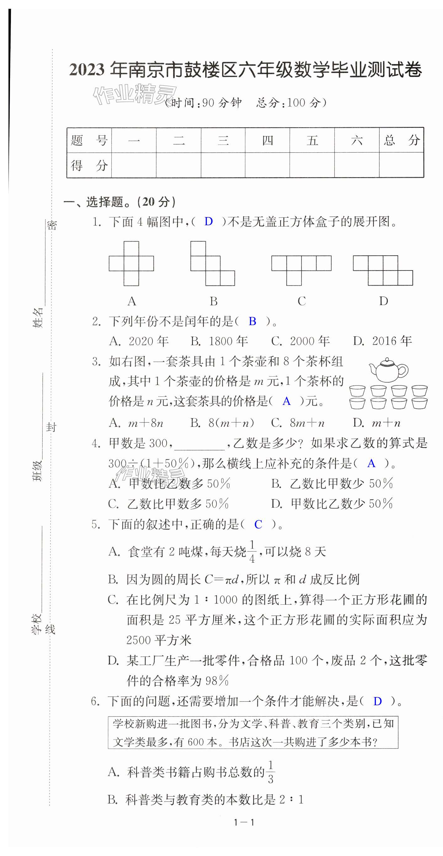注:目前有些书本章节名称可能整理的还不是很完善,但都是按照顺序排列的,请同学们按照顺序仔细查找。练习册 2024年超能学典江苏13大市名牌小学毕业升学真卷精编六年级数学2版 答案主要是用来给同学们做完题方便对答案用的,请勿直接抄袭。