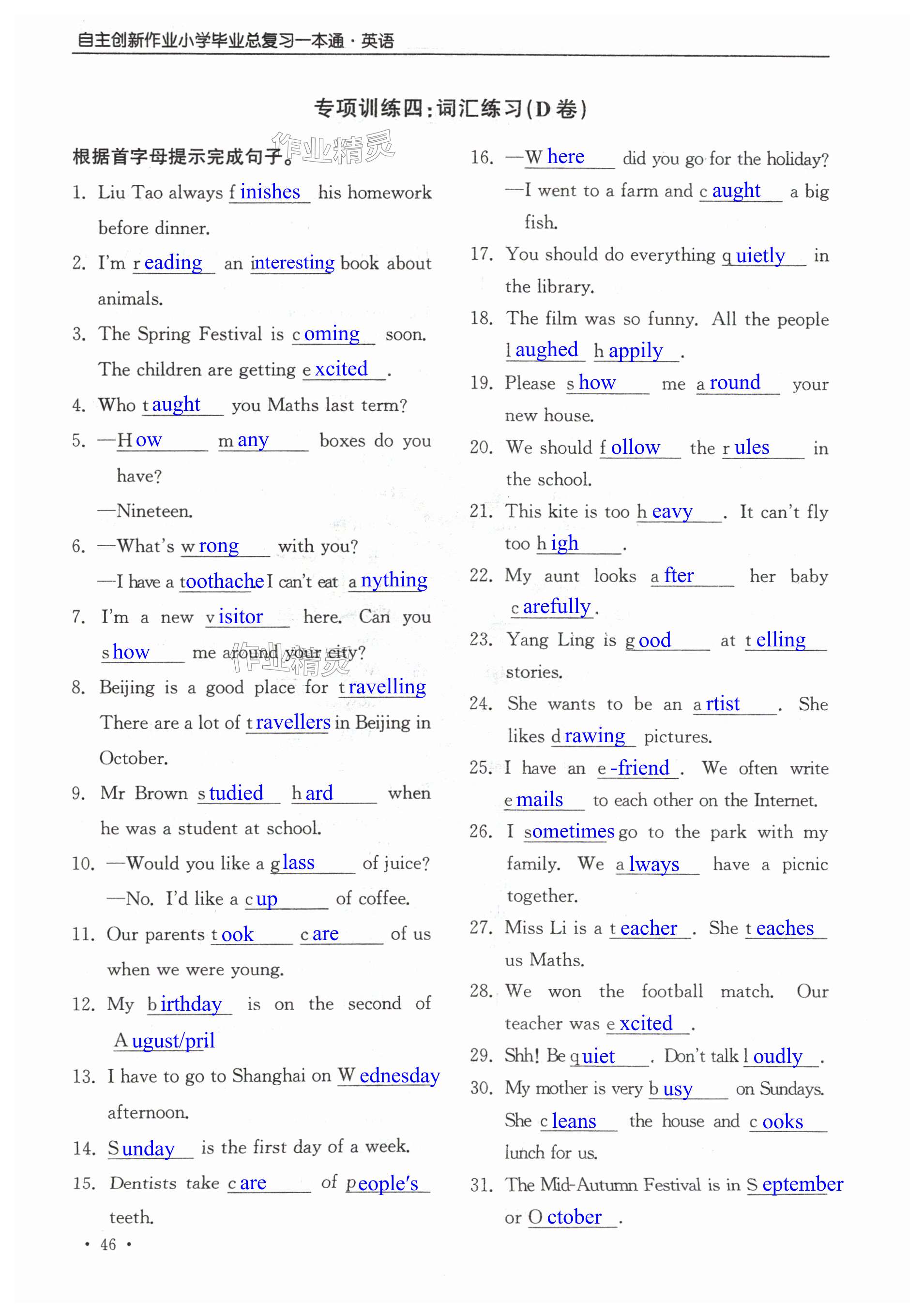注:目前有些书本章节名称可能整理的还不是很完善,但都是按照顺序排列的,请同学们按照顺序仔细查找。练习册 2024年自主创新作业小学毕业总复习一本通英语译林版淮安专版 答案主要是用来给同学们做完题方便对答案用的,请勿直接抄袭。