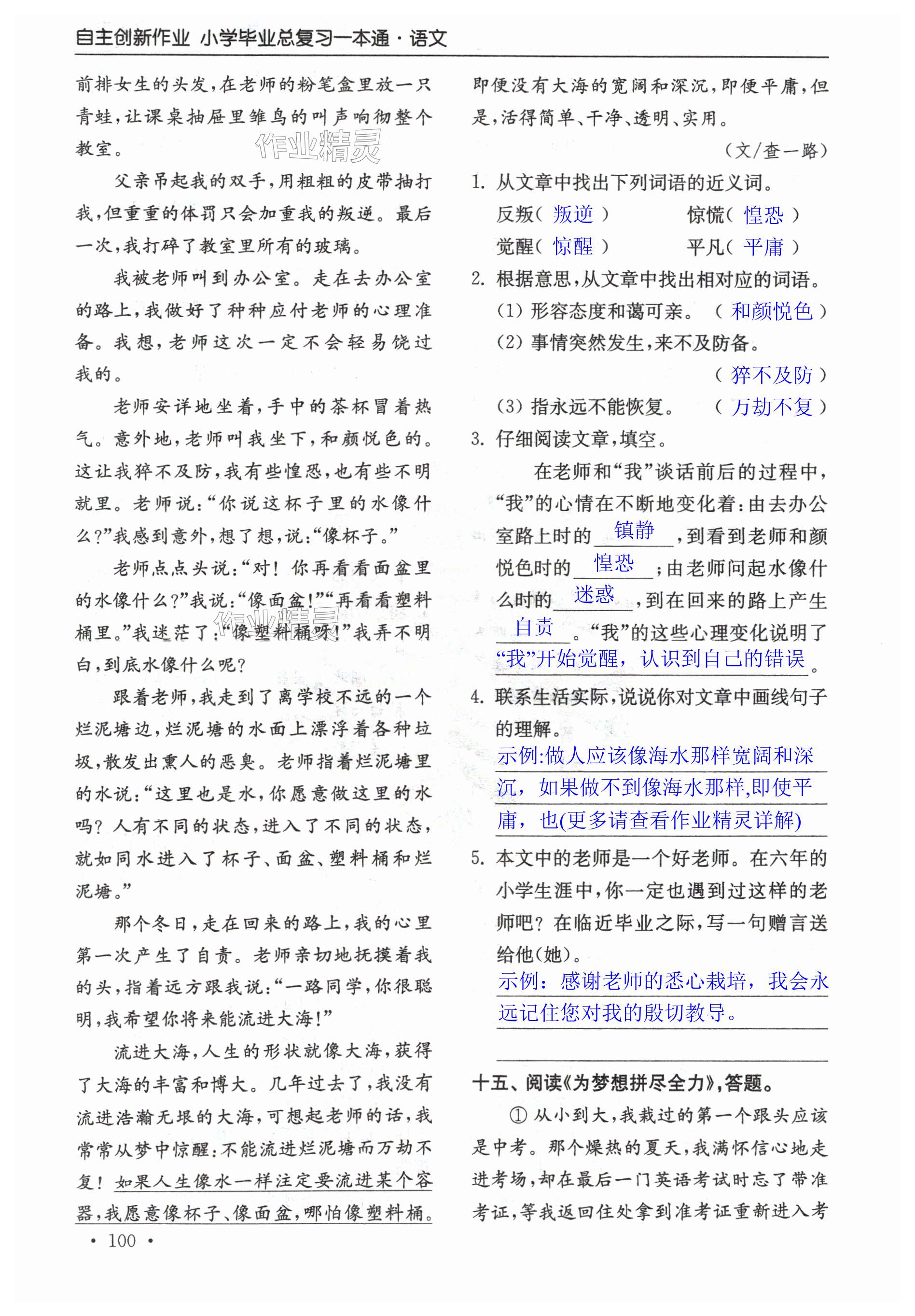 注:目前有些书本章节名称可能整理的还不是很完善,但都是按照顺序排列的,请同学们按照顺序仔细查找。练习册 2024年自主创新作业小学毕业总复习一本通语文淮安专版 答案主要是用来给同学们做完题方便对答案用的,请勿直接抄袭。