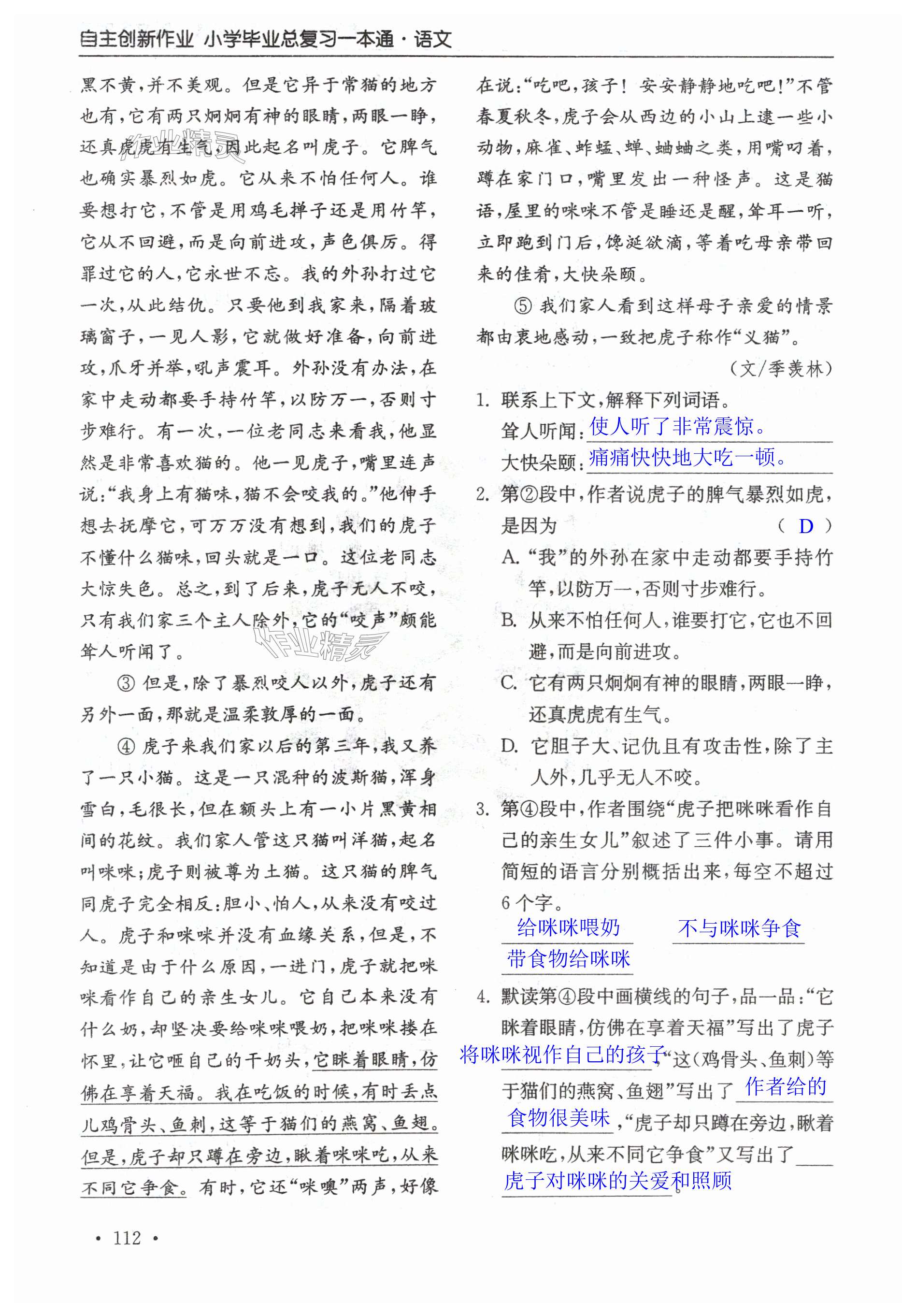 注:目前有些书本章节名称可能整理的还不是很完善,但都是按照顺序排列的,请同学们按照顺序仔细查找。练习册 2024年自主创新作业小学毕业总复习一本通语文淮安专版 答案主要是用来给同学们做完题方便对答案用的,请勿直接抄袭。