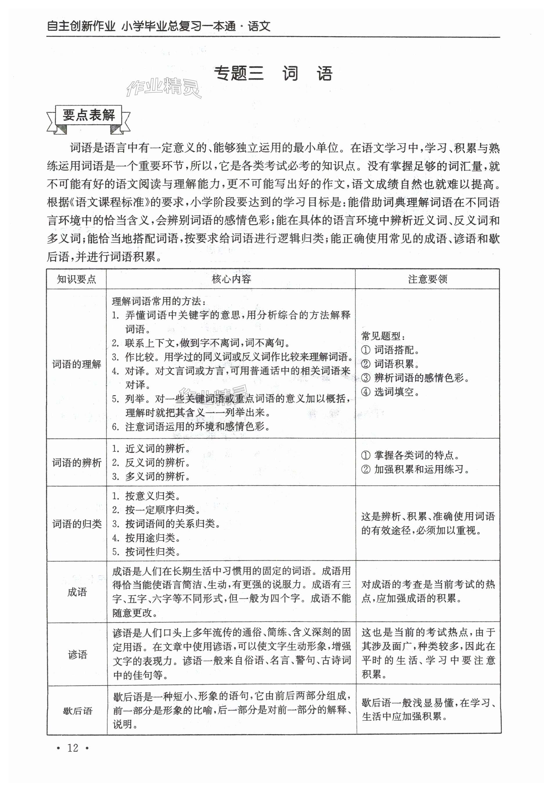注:目前有些书本章节名称可能整理的还不是很完善,但都是按照顺序排列的,请同学们按照顺序仔细查找。练习册 2024年自主创新作业小学毕业总复习一本通语文淮安专版 答案主要是用来给同学们做完题方便对答案用的,请勿直接抄袭。