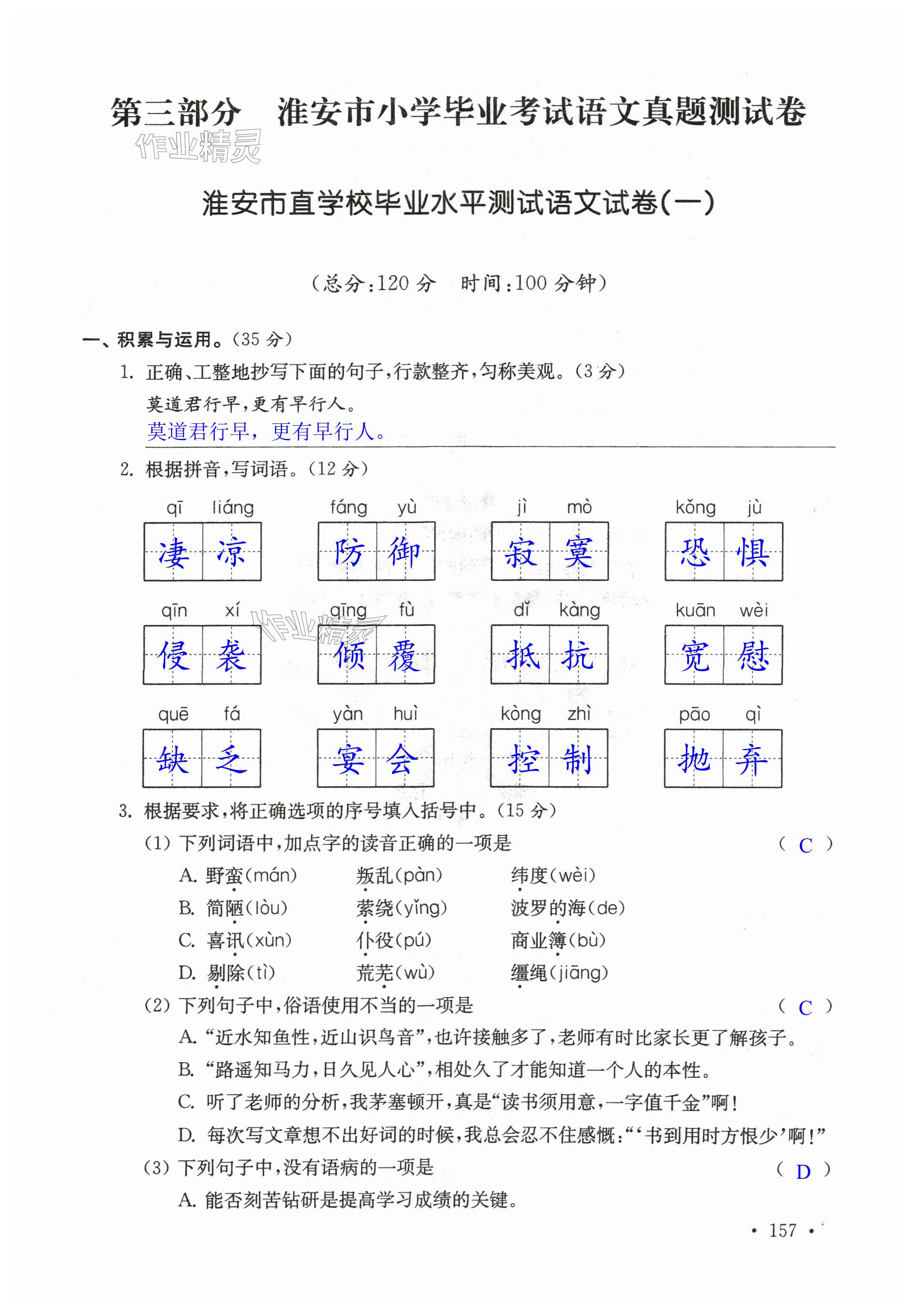 注:目前有些书本章节名称可能整理的还不是很完善,但都是按照顺序排列的,请同学们按照顺序仔细查找。练习册 2024年自主创新作业小学毕业总复习一本通语文淮安专版 答案主要是用来给同学们做完题方便对答案用的,请勿直接抄袭。