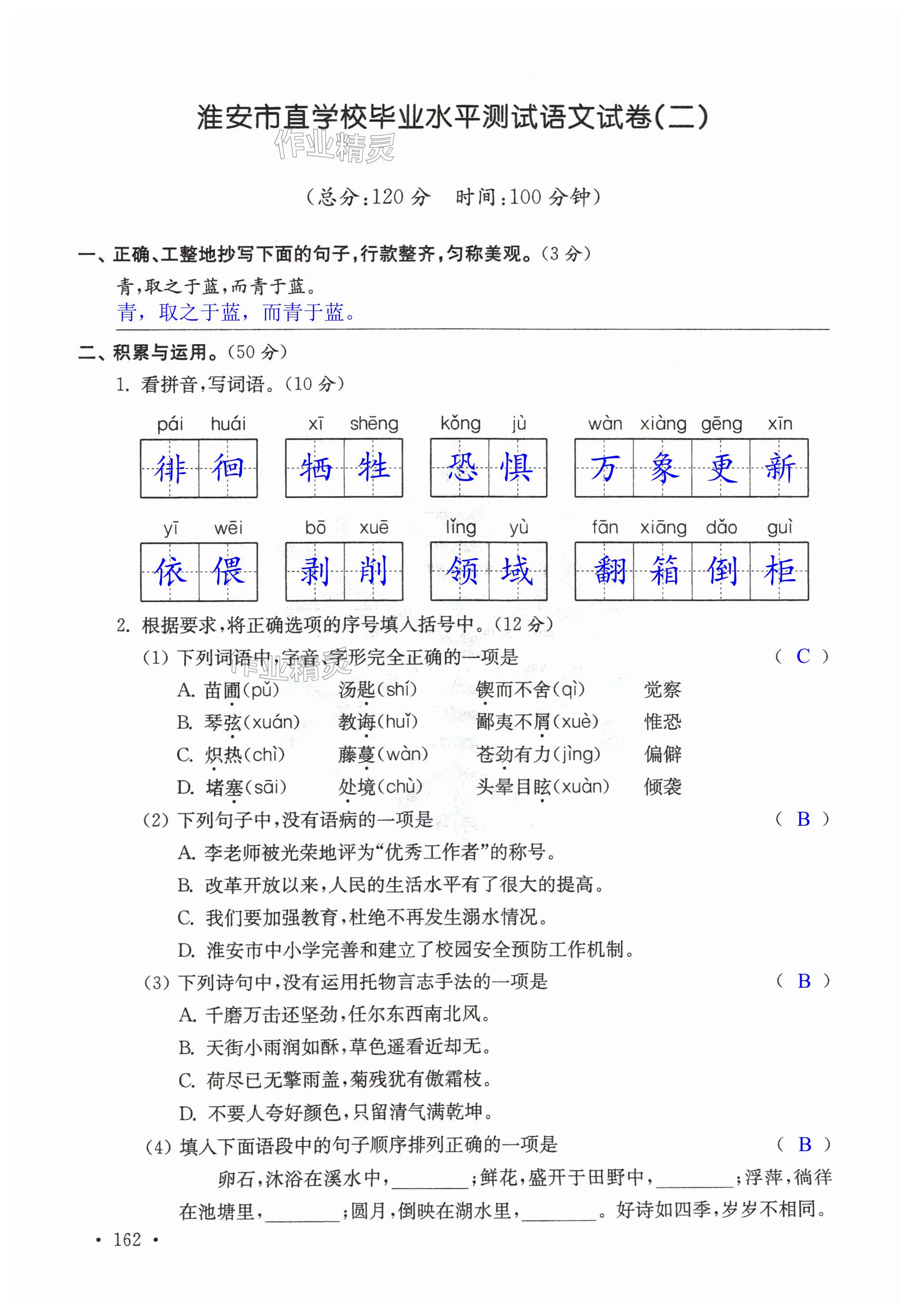 注:目前有些书本章节名称可能整理的还不是很完善,但都是按照顺序排列的,请同学们按照顺序仔细查找。练习册 2024年自主创新作业小学毕业总复习一本通语文淮安专版 答案主要是用来给同学们做完题方便对答案用的,请勿直接抄袭。