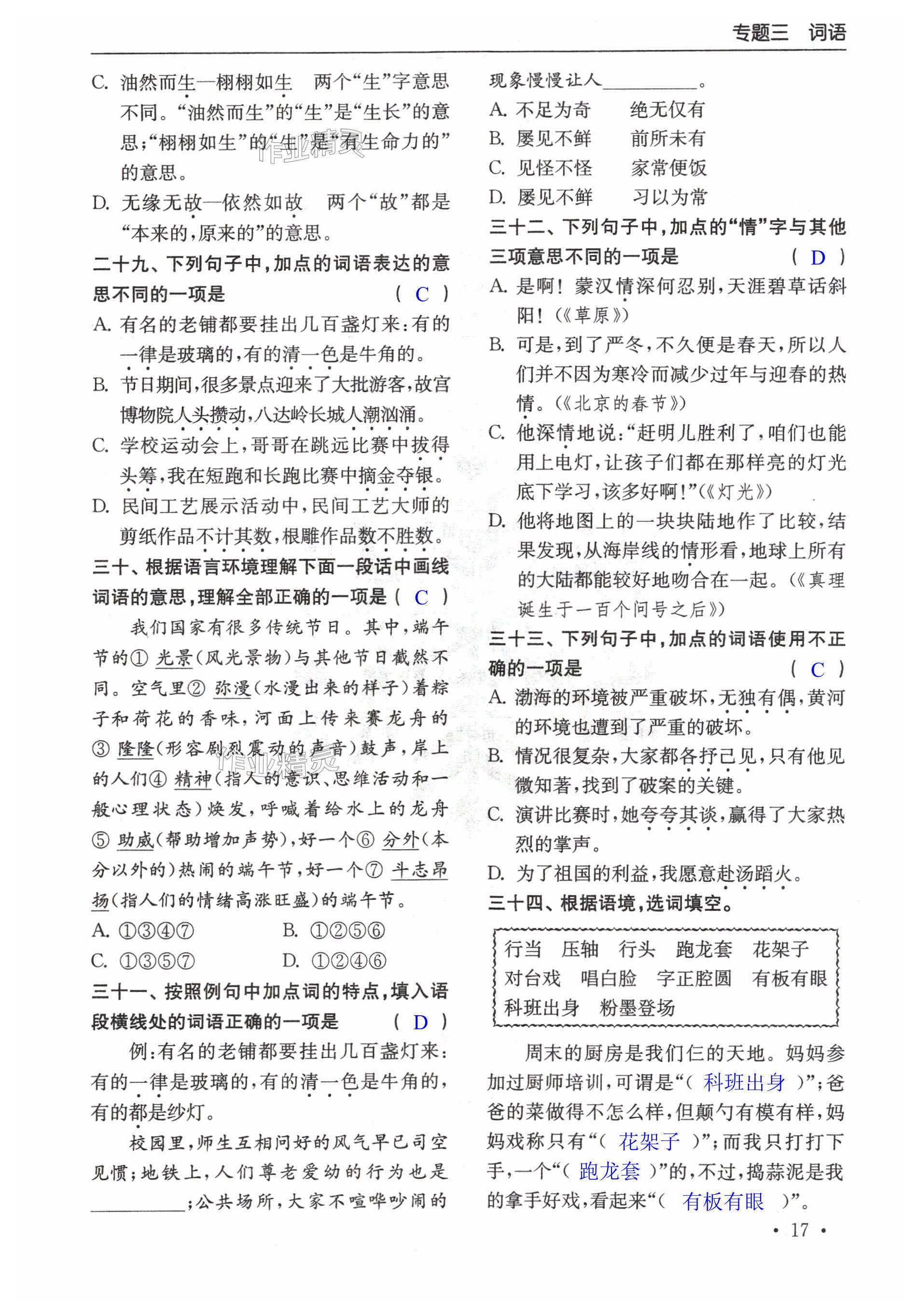 注:目前有些书本章节名称可能整理的还不是很完善,但都是按照顺序排列的,请同学们按照顺序仔细查找。练习册 2024年自主创新作业小学毕业总复习一本通语文淮安专版 答案主要是用来给同学们做完题方便对答案用的,请勿直接抄袭。