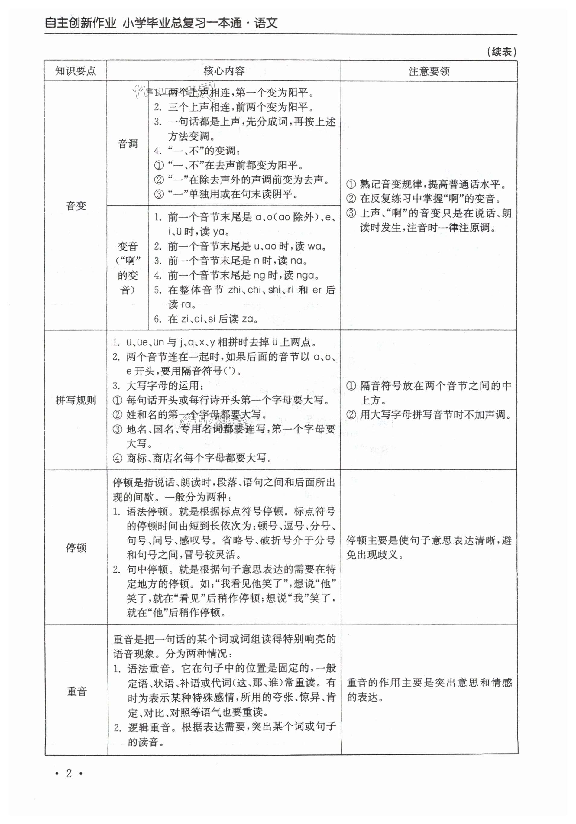 2024年自主创新作业小学毕业总复习一本通语文淮安专版
