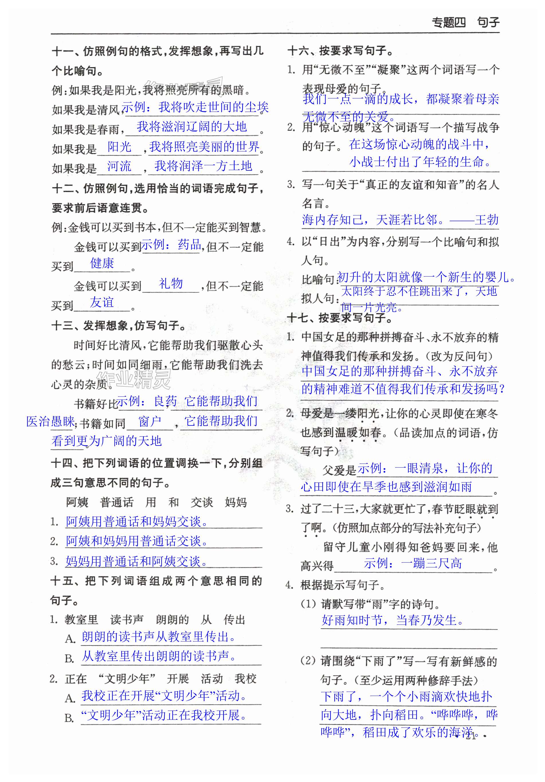注:目前有些书本章节名称可能整理的还不是很完善,但都是按照顺序排列的,请同学们按照顺序仔细查找。练习册 2024年自主创新作业小学毕业总复习一本通语文淮安专版 答案主要是用来给同学们做完题方便对答案用的,请勿直接抄袭。