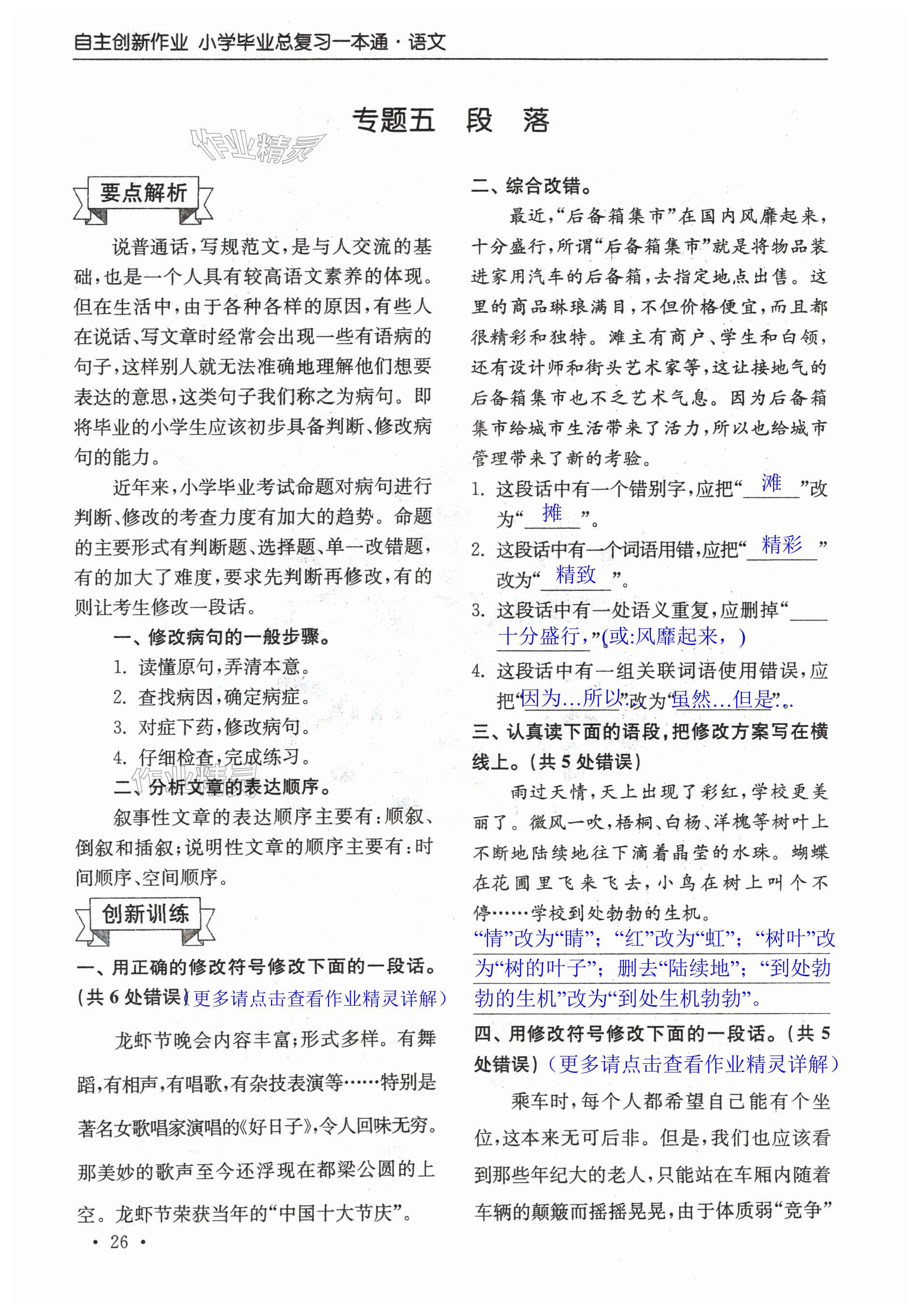 注:目前有些书本章节名称可能整理的还不是很完善,但都是按照顺序排列的,请同学们按照顺序仔细查找。练习册 2024年自主创新作业小学毕业总复习一本通语文淮安专版 答案主要是用来给同学们做完题方便对答案用的,请勿直接抄袭。