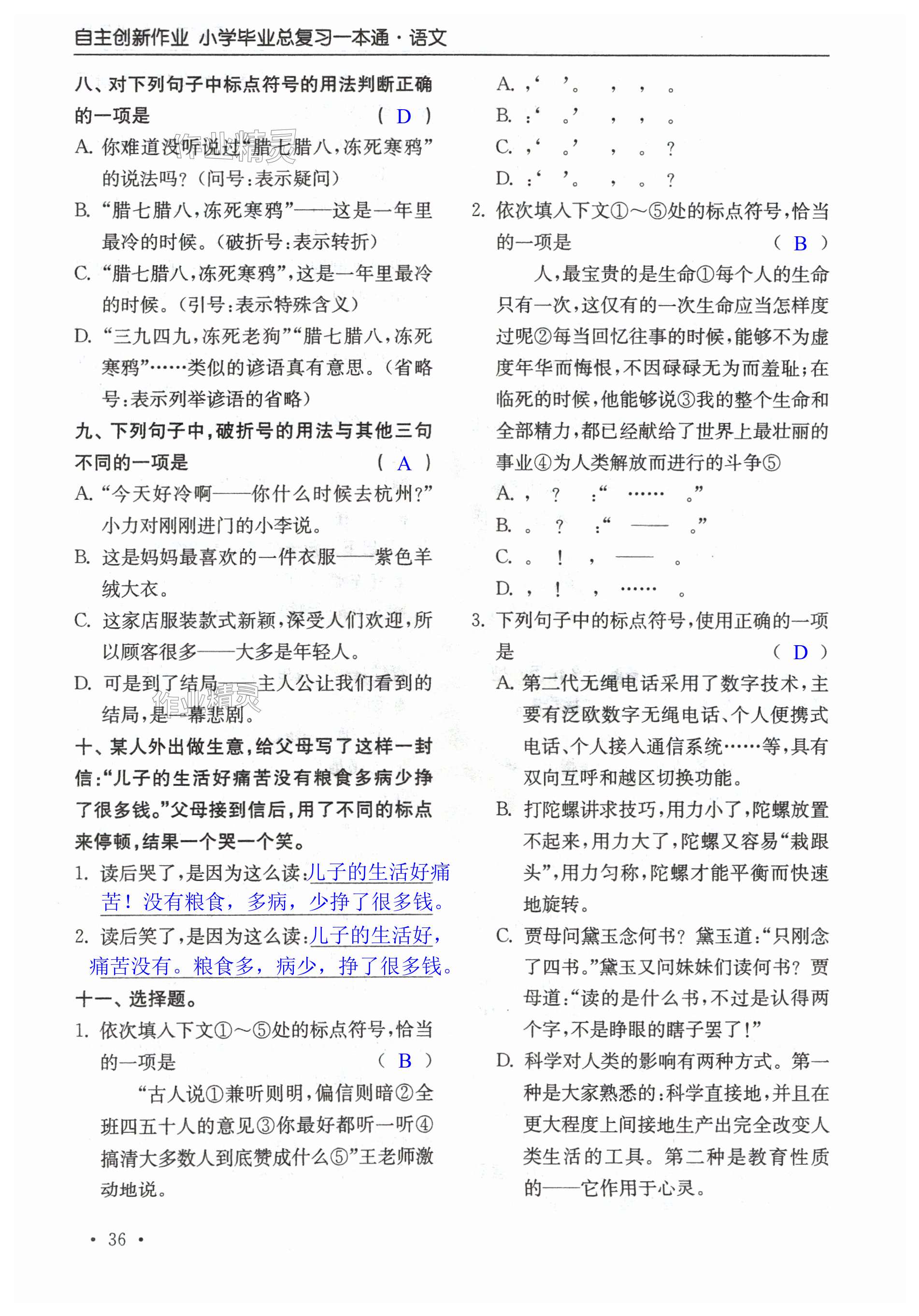 注:目前有些书本章节名称可能整理的还不是很完善,但都是按照顺序排列的,请同学们按照顺序仔细查找。练习册 2024年自主创新作业小学毕业总复习一本通语文淮安专版 答案主要是用来给同学们做完题方便对答案用的,请勿直接抄袭。