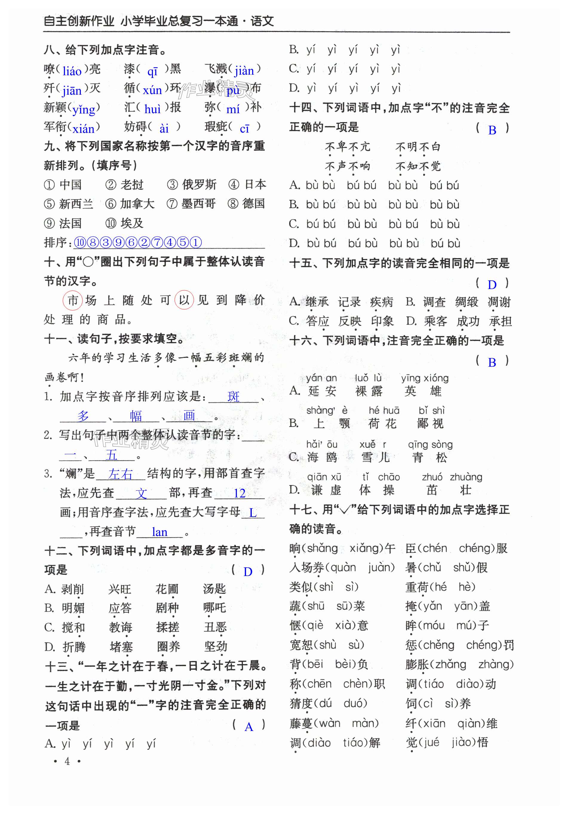 注:目前有些书本章节名称可能整理的还不是很完善,但都是按照顺序排列的,请同学们按照顺序仔细查找。练习册 2024年自主创新作业小学毕业总复习一本通语文淮安专版 答案主要是用来给同学们做完题方便对答案用的,请勿直接抄袭。