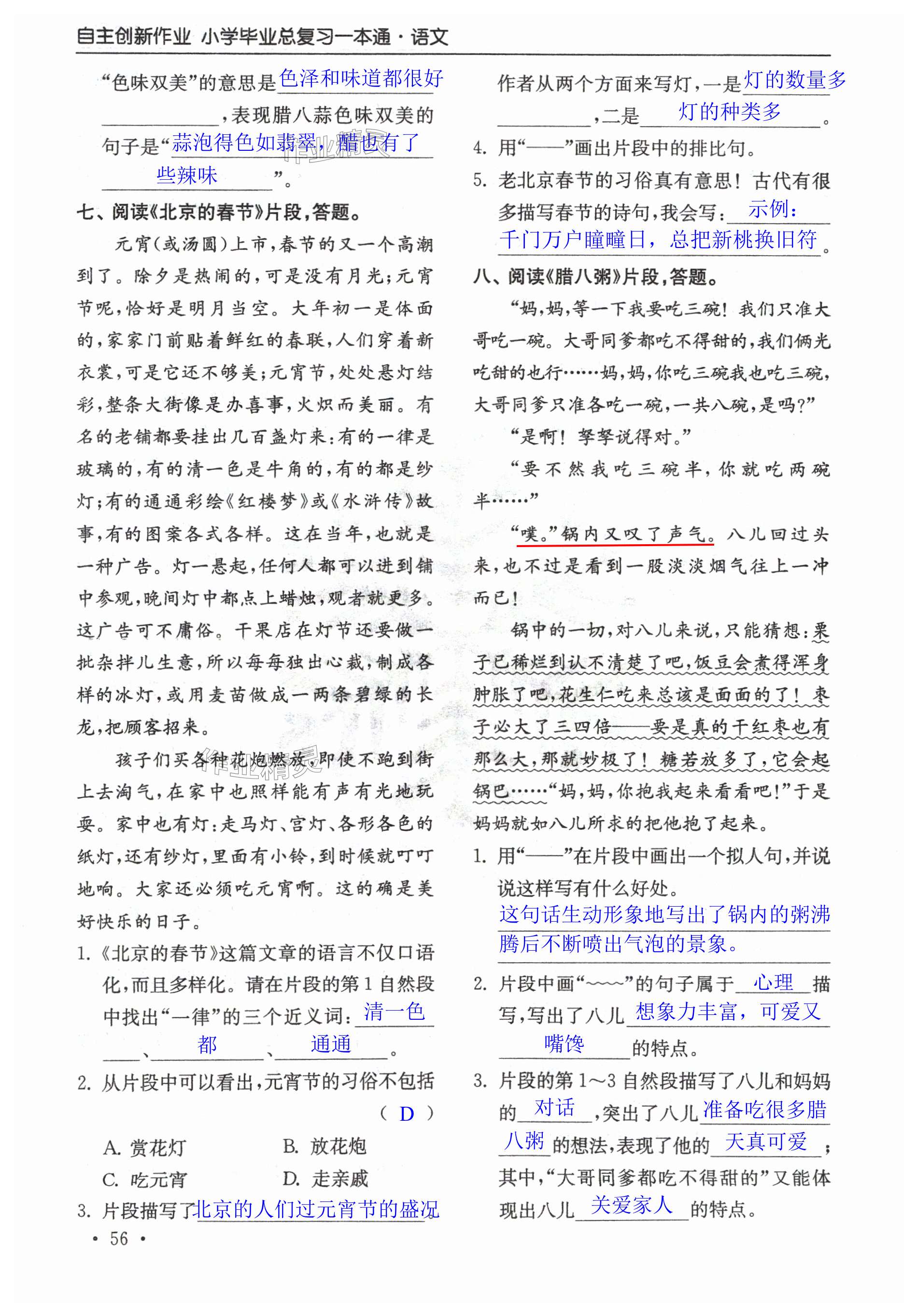 注:目前有些书本章节名称可能整理的还不是很完善,但都是按照顺序排列的,请同学们按照顺序仔细查找。练习册 2024年自主创新作业小学毕业总复习一本通语文淮安专版 答案主要是用来给同学们做完题方便对答案用的,请勿直接抄袭。