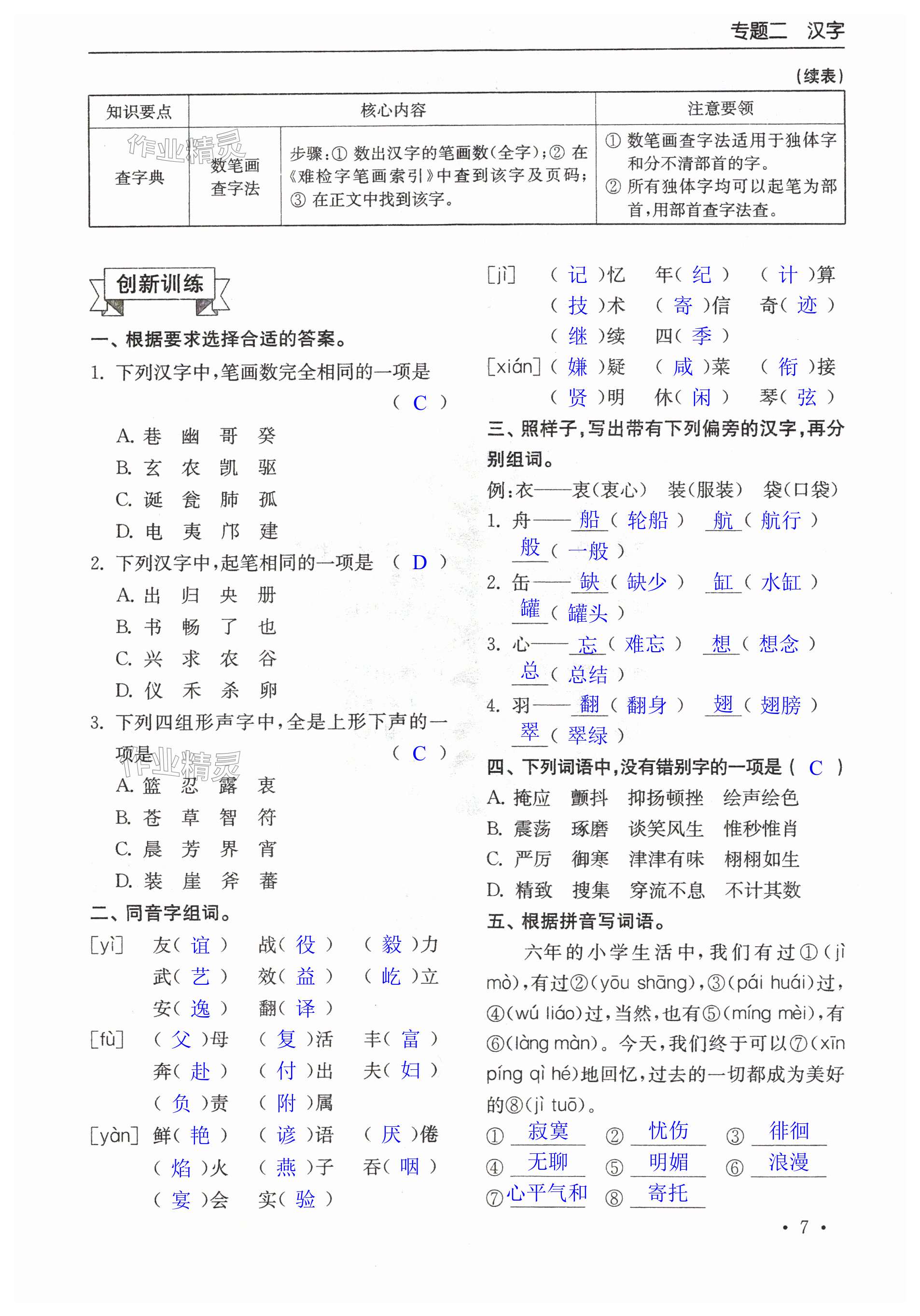注:目前有些书本章节名称可能整理的还不是很完善,但都是按照顺序排列的,请同学们按照顺序仔细查找。练习册 2024年自主创新作业小学毕业总复习一本通语文淮安专版 答案主要是用来给同学们做完题方便对答案用的,请勿直接抄袭。