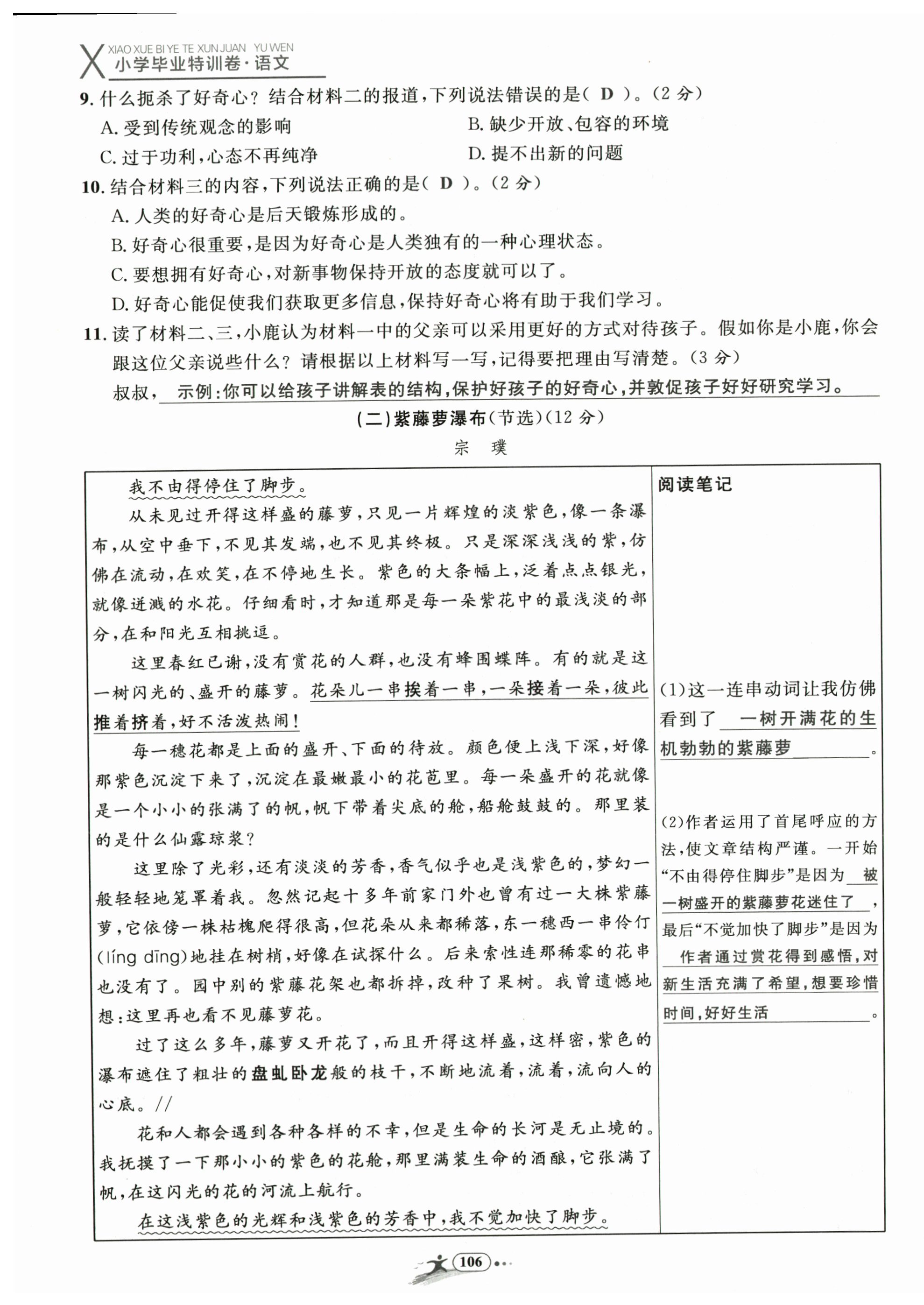 注:目前有些书本章节名称可能整理的还不是很完善,但都是按照顺序排列的,请同学们按照顺序仔细查找。练习册 2024年小学毕业特训卷六年级语文温州专版 答案主要是用来给同学们做完题方便对答案用的,请勿直接抄袭。