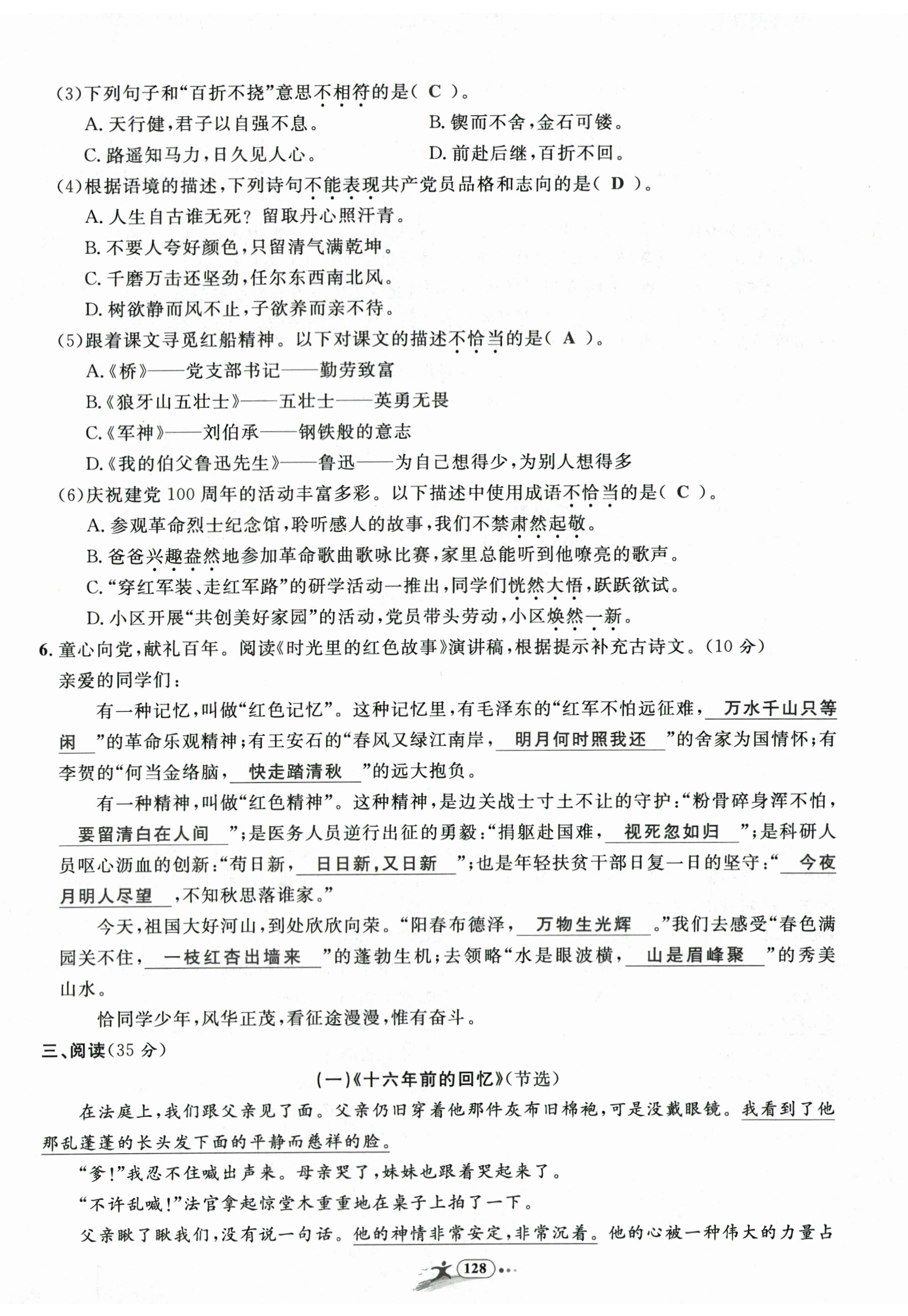 注:目前有些书本章节名称可能整理的还不是很完善,但都是按照顺序排列的,请同学们按照顺序仔细查找。练习册 2024年小学毕业特训卷六年级语文温州专版 答案主要是用来给同学们做完题方便对答案用的,请勿直接抄袭。