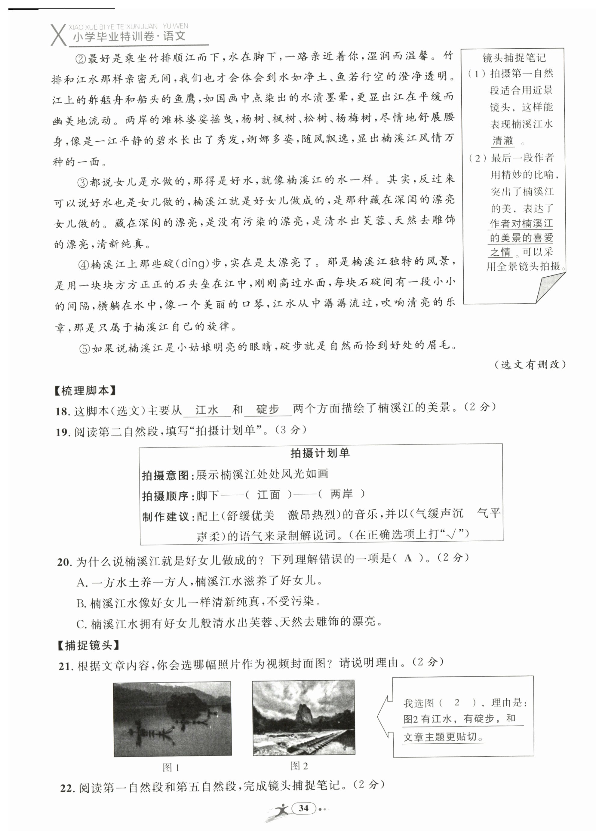 注:目前有些书本章节名称可能整理的还不是很完善,但都是按照顺序排列的,请同学们按照顺序仔细查找。练习册 2024年小学毕业特训卷六年级语文温州专版 答案主要是用来给同学们做完题方便对答案用的,请勿直接抄袭。