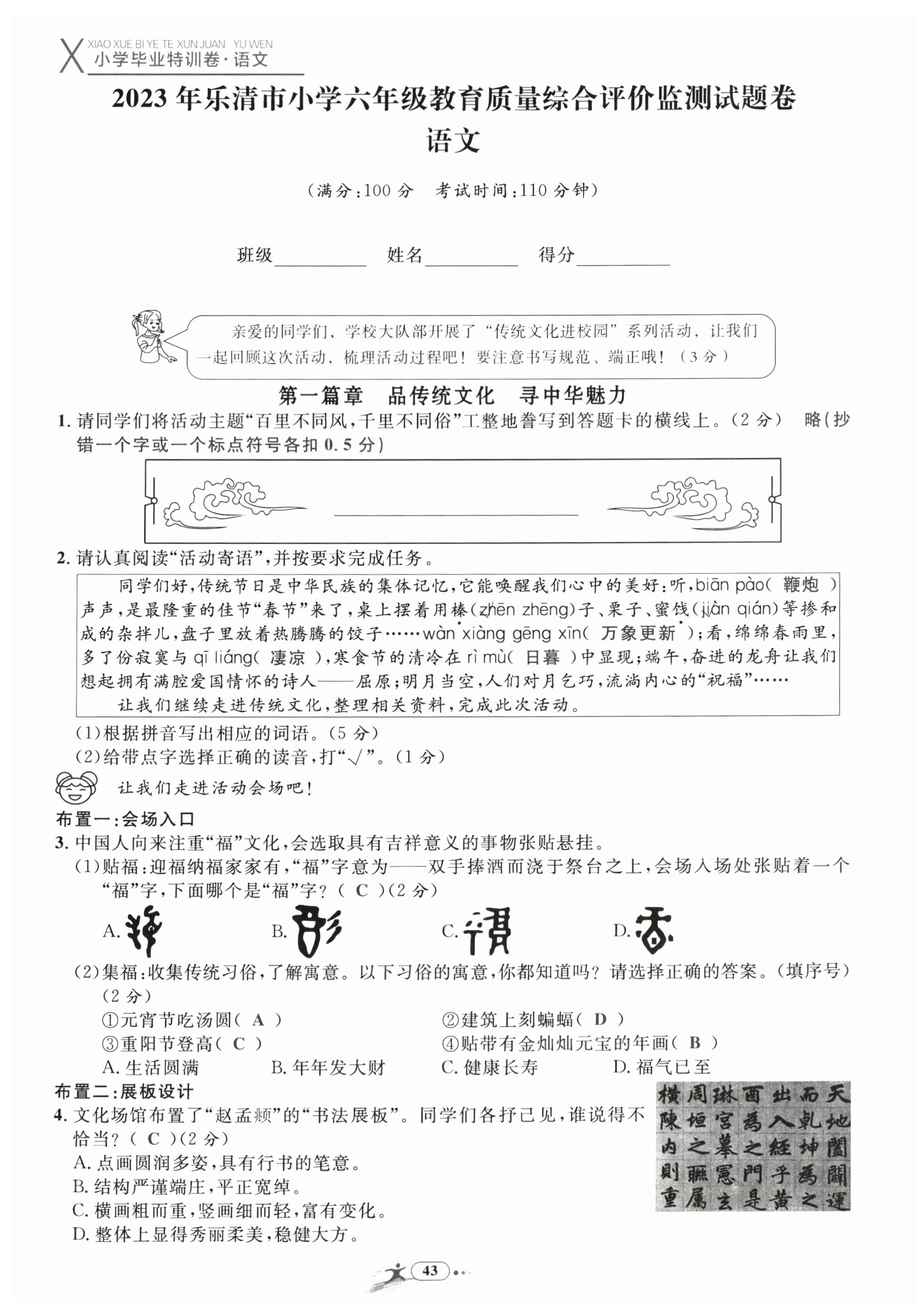 注:目前有些书本章节名称可能整理的还不是很完善,但都是按照顺序排列的,请同学们按照顺序仔细查找。练习册 2024年小学毕业特训卷六年级语文温州专版 答案主要是用来给同学们做完题方便对答案用的,请勿直接抄袭。