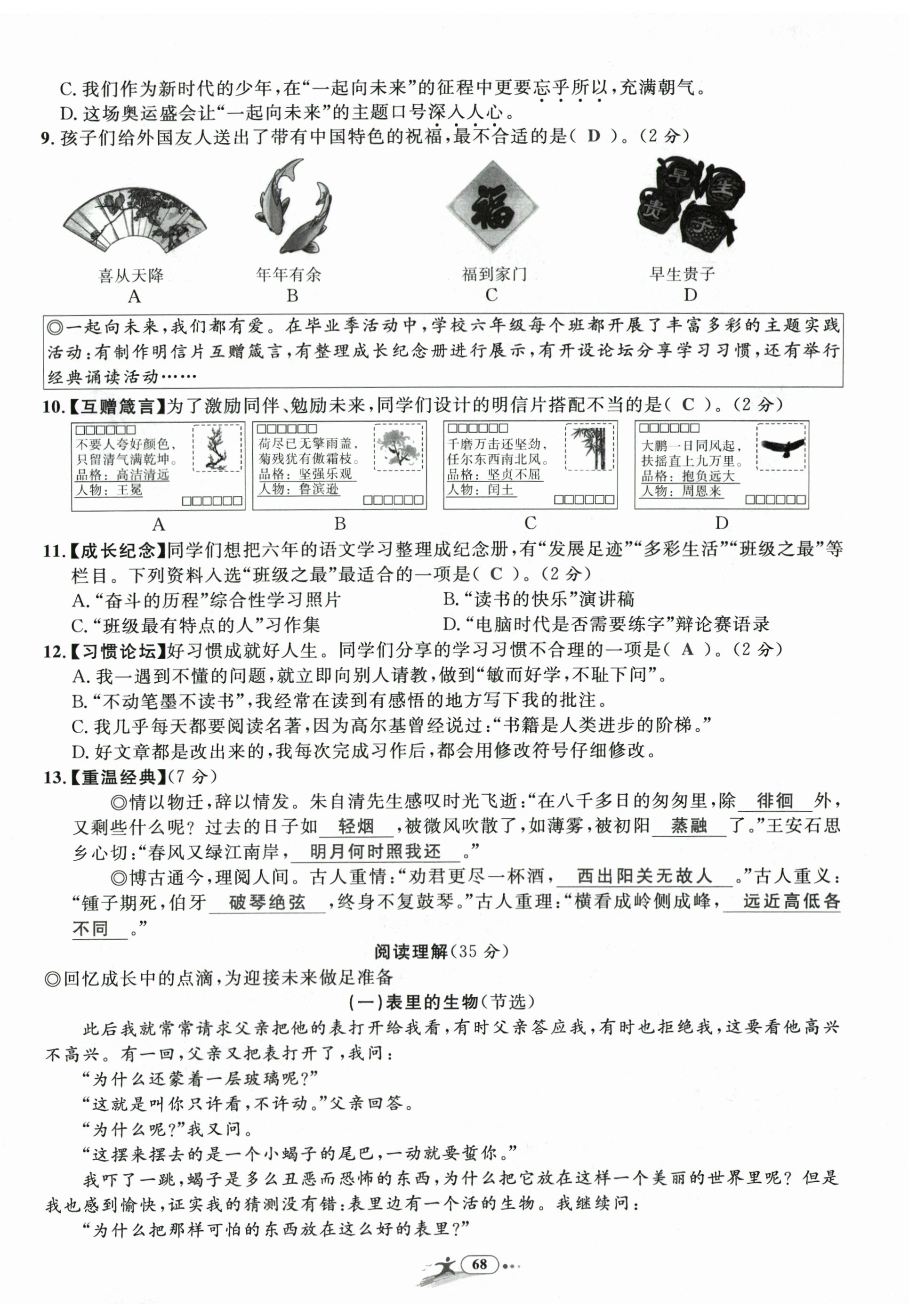 注:目前有些书本章节名称可能整理的还不是很完善,但都是按照顺序排列的,请同学们按照顺序仔细查找。练习册 2024年小学毕业特训卷六年级语文温州专版 答案主要是用来给同学们做完题方便对答案用的,请勿直接抄袭。