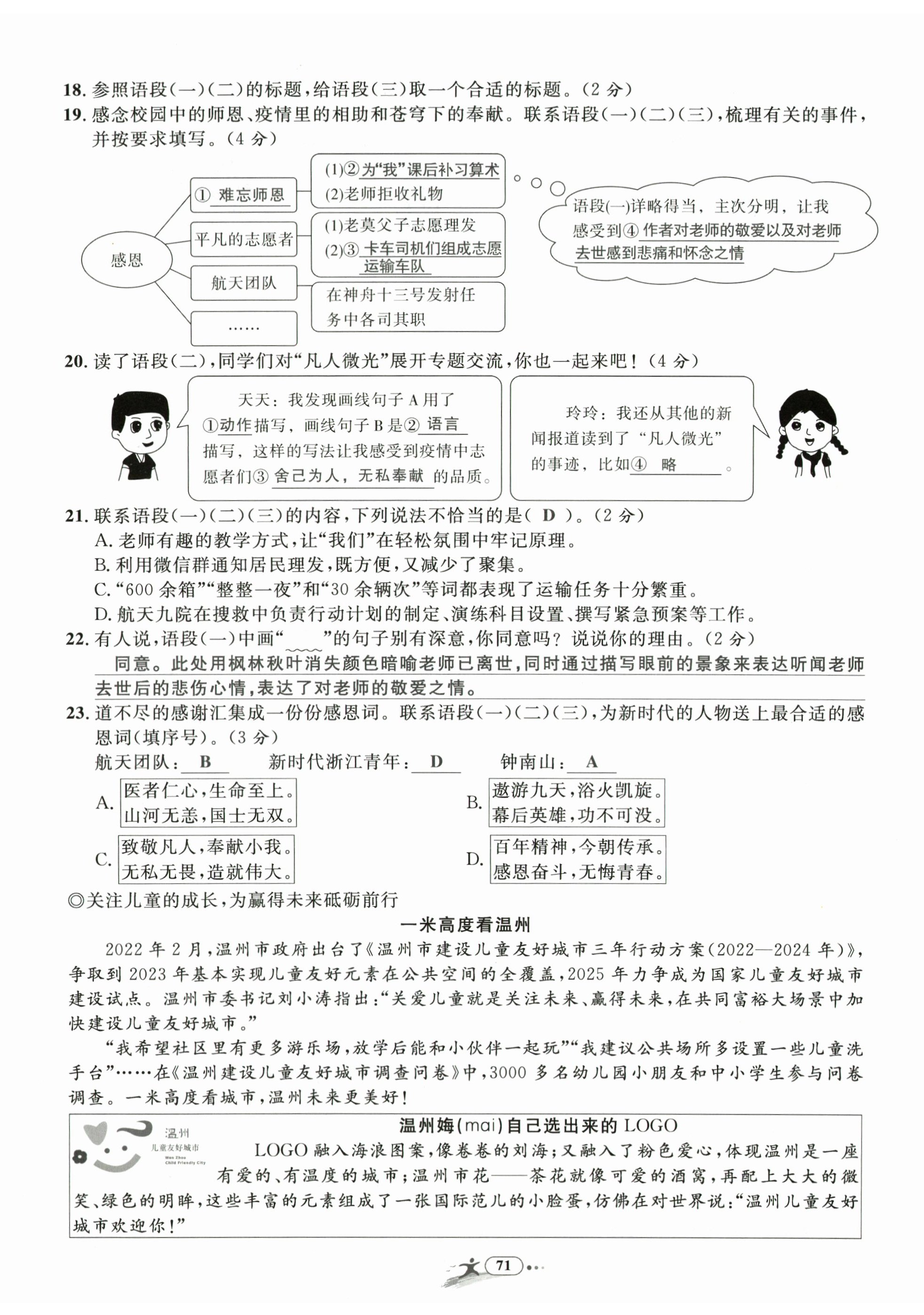 2024年小学毕业特训卷六年级语文温州专版
