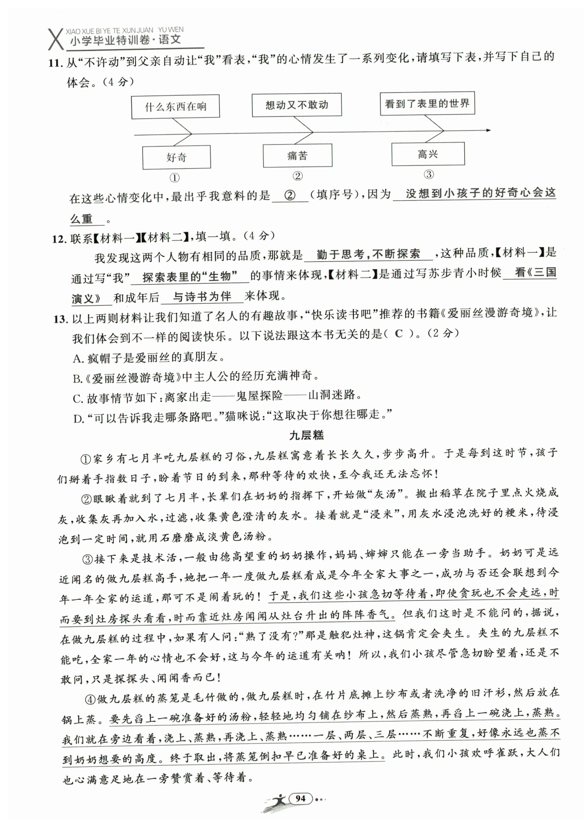 注:目前有些书本章节名称可能整理的还不是很完善,但都是按照顺序排列的,请同学们按照顺序仔细查找。练习册 2024年小学毕业特训卷六年级语文温州专版 答案主要是用来给同学们做完题方便对答案用的,请勿直接抄袭。