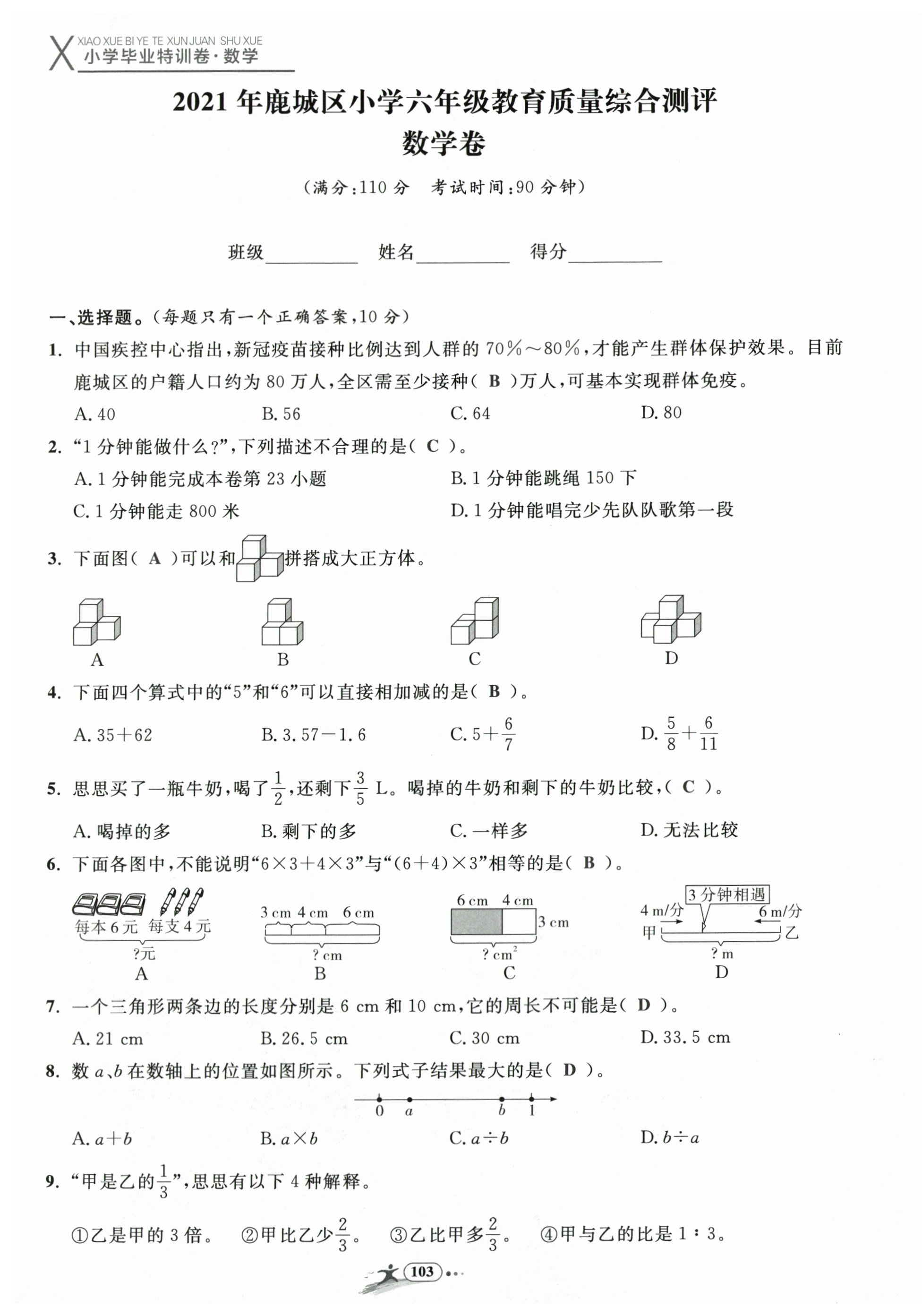 注:目前有些书本章节名称可能整理的还不是很完善,但都是按照顺序排列的,请同学们按照顺序仔细查找。练习册 2024年小学毕业特训卷数学温州专版 答案主要是用来给同学们做完题方便对答案用的,请勿直接抄袭。