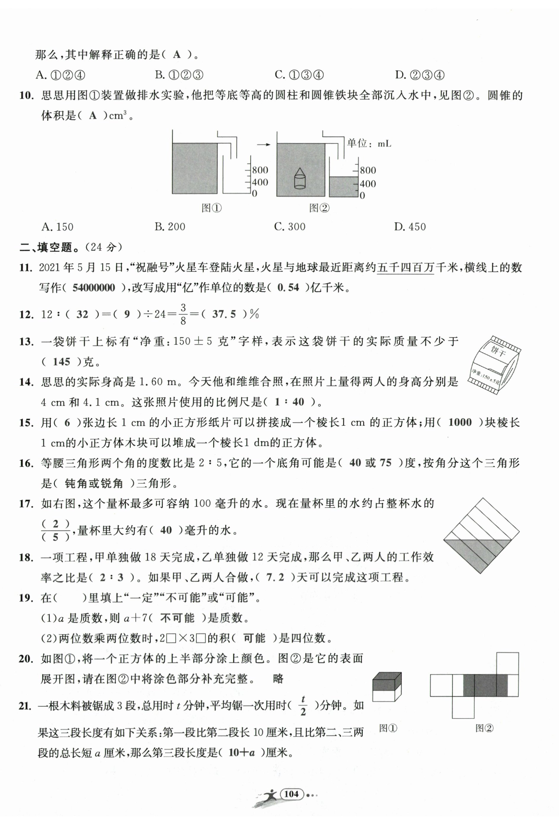注:目前有些书本章节名称可能整理的还不是很完善,但都是按照顺序排列的,请同学们按照顺序仔细查找。练习册 2024年小学毕业特训卷数学温州专版 答案主要是用来给同学们做完题方便对答案用的,请勿直接抄袭。