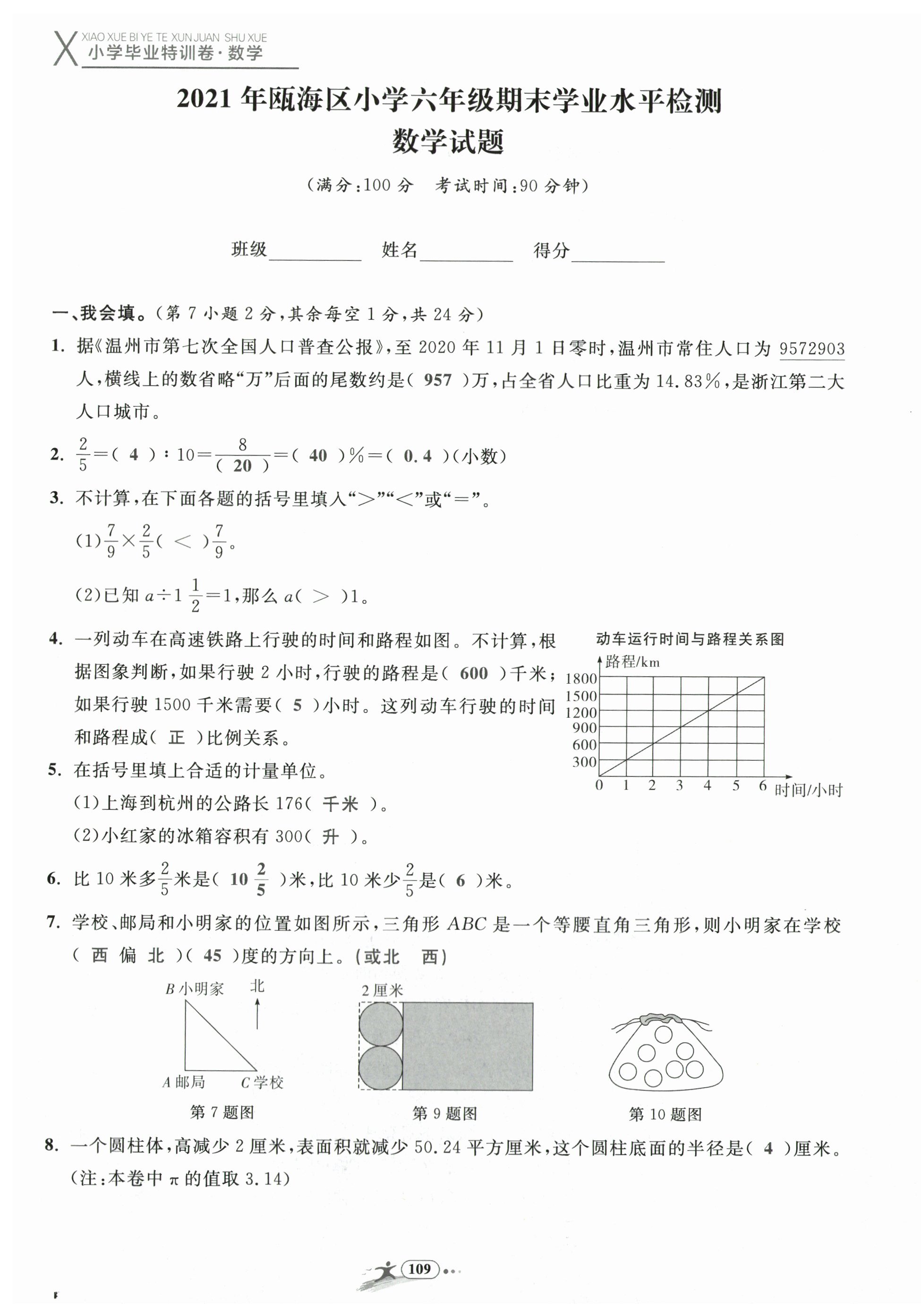 注:目前有些书本章节名称可能整理的还不是很完善,但都是按照顺序排列的,请同学们按照顺序仔细查找。练习册 2024年小学毕业特训卷数学温州专版 答案主要是用来给同学们做完题方便对答案用的,请勿直接抄袭。