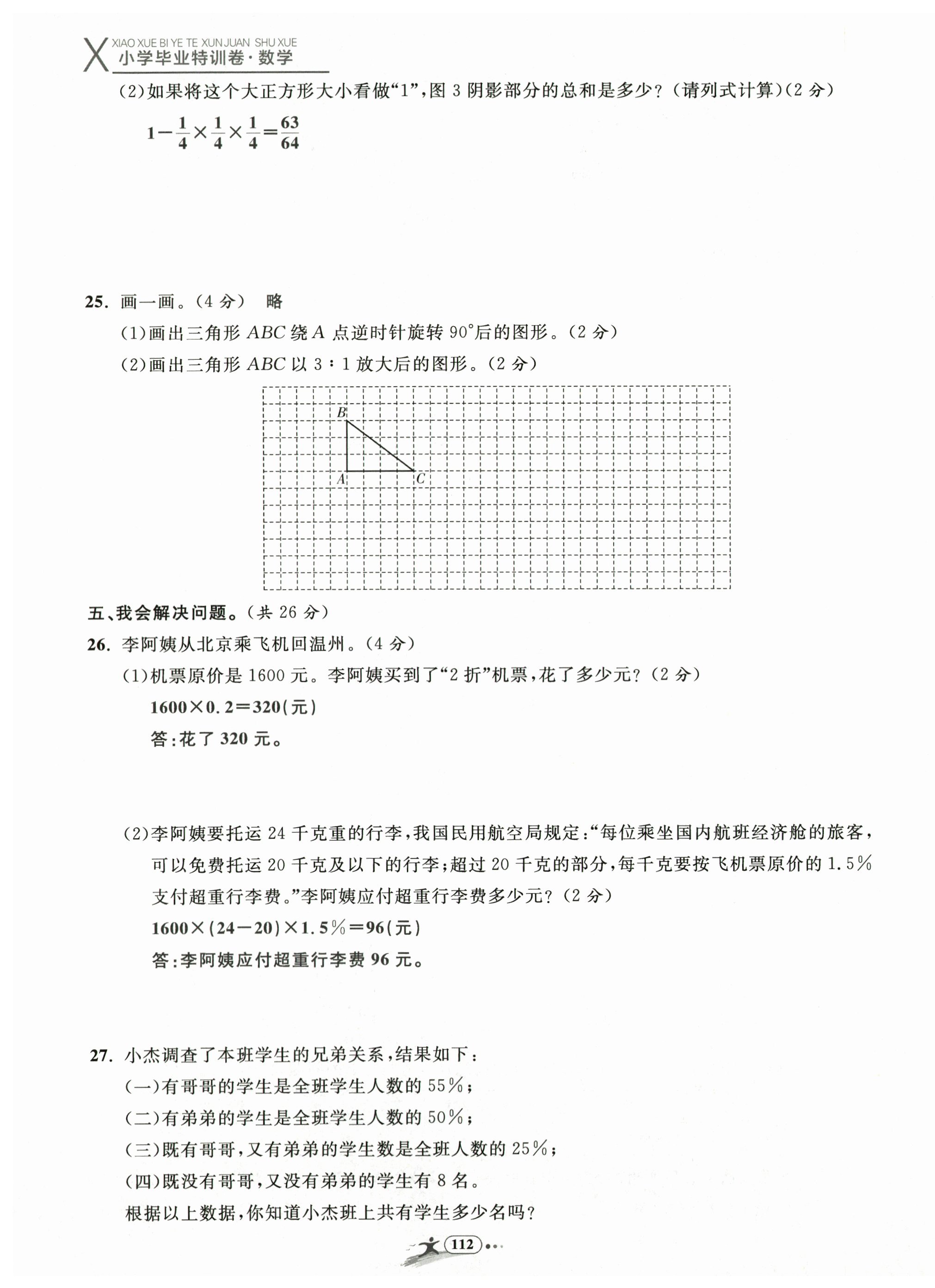 注:目前有些书本章节名称可能整理的还不是很完善,但都是按照顺序排列的,请同学们按照顺序仔细查找。练习册 2024年小学毕业特训卷数学温州专版 答案主要是用来给同学们做完题方便对答案用的,请勿直接抄袭。