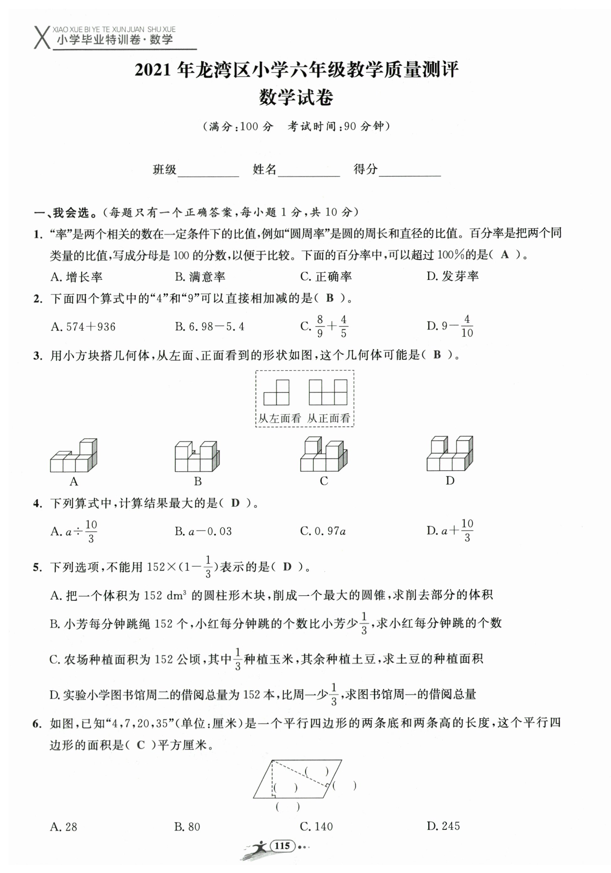 2024年小学毕业特训卷数学温州专版