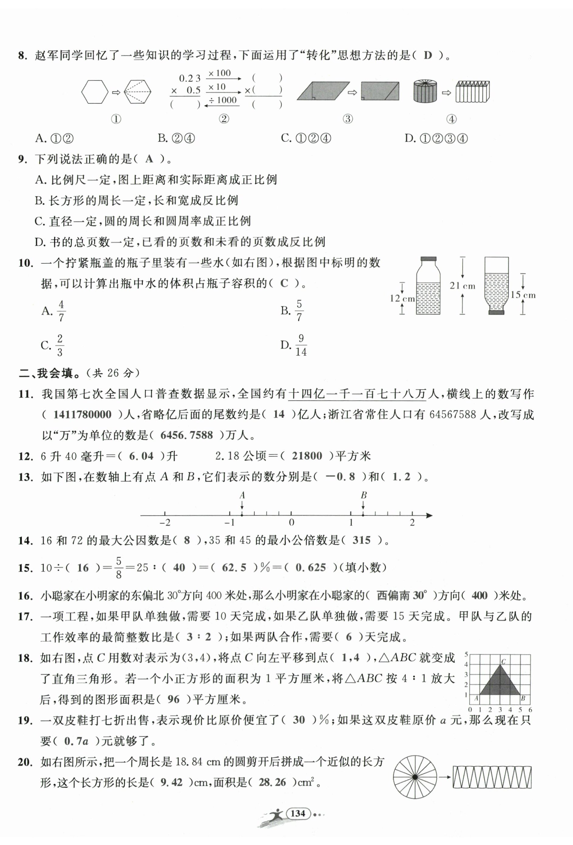 注:目前有些书本章节名称可能整理的还不是很完善,但都是按照顺序排列的,请同学们按照顺序仔细查找。练习册 2024年小学毕业特训卷数学温州专版 答案主要是用来给同学们做完题方便对答案用的,请勿直接抄袭。
