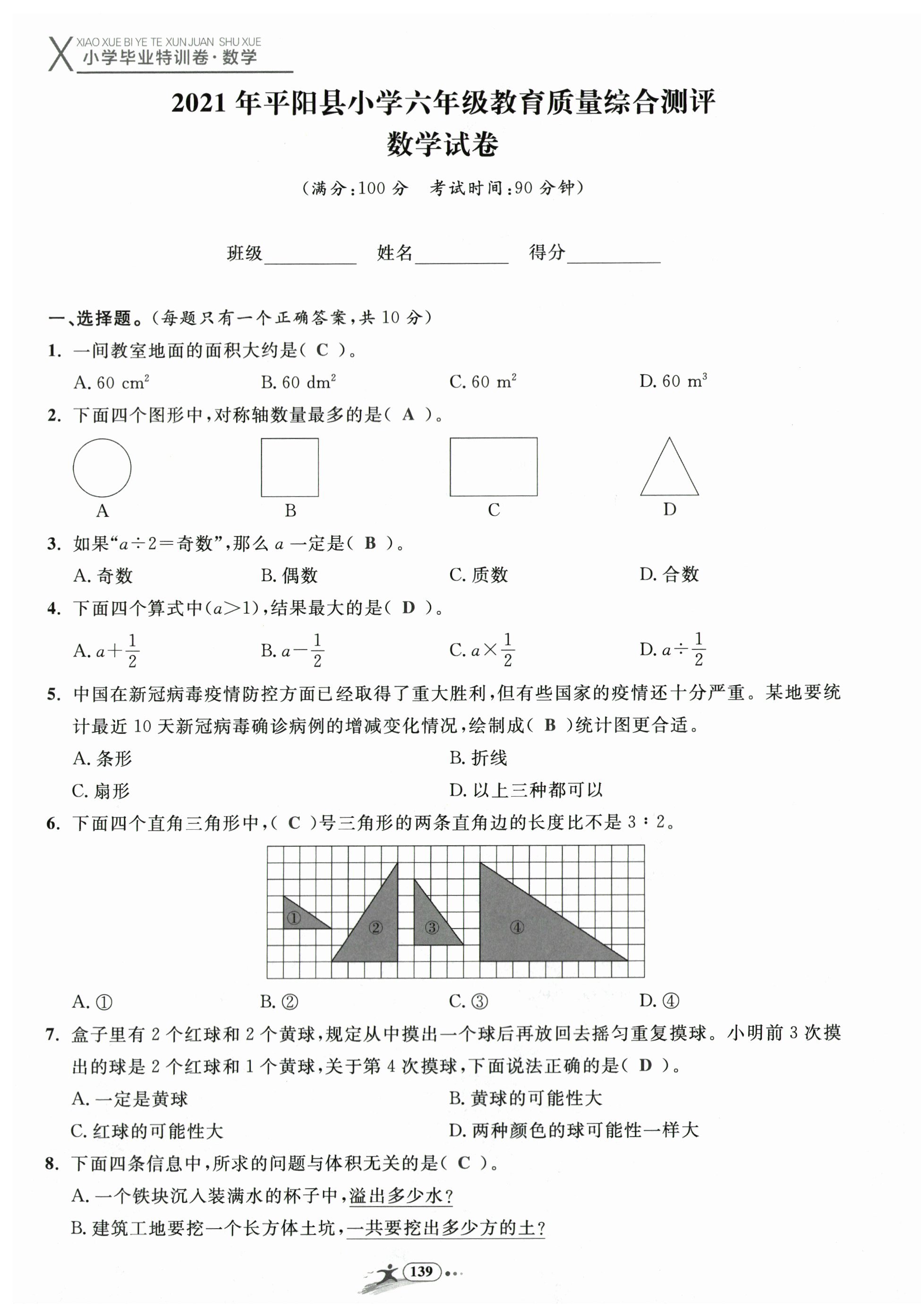 注:目前有些书本章节名称可能整理的还不是很完善,但都是按照顺序排列的,请同学们按照顺序仔细查找。练习册 2024年小学毕业特训卷数学温州专版 答案主要是用来给同学们做完题方便对答案用的,请勿直接抄袭。