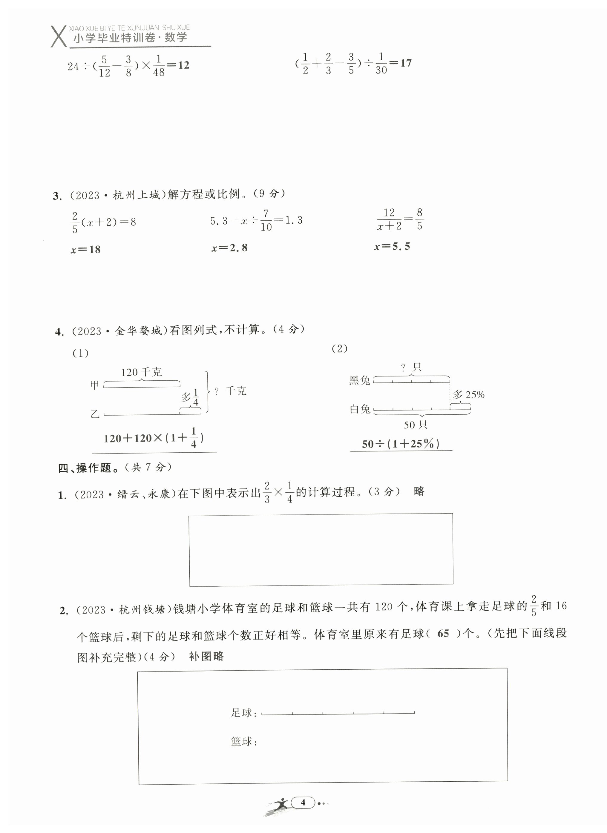 注:目前有些书本章节名称可能整理的还不是很完善,但都是按照顺序排列的,请同学们按照顺序仔细查找。练习册 2024年小学毕业特训卷数学温州专版 答案主要是用来给同学们做完题方便对答案用的,请勿直接抄袭。