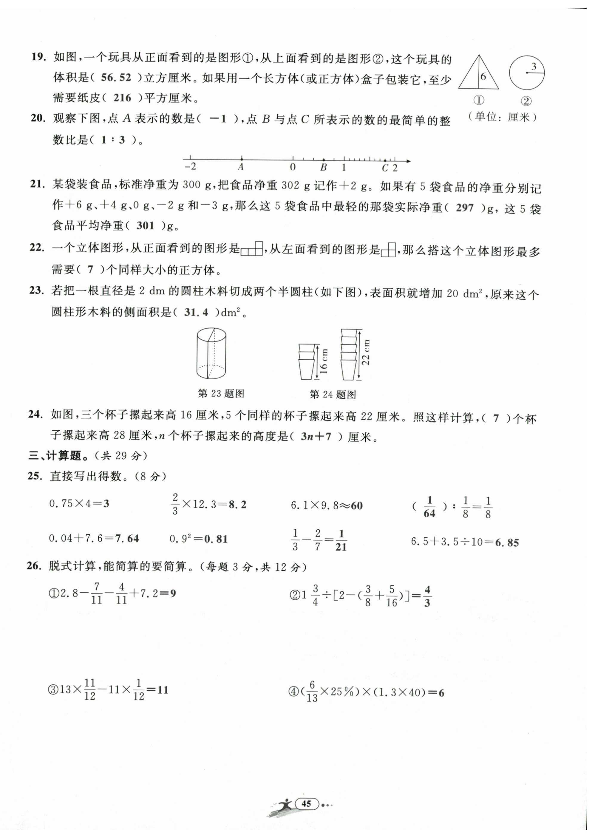 注:目前有些书本章节名称可能整理的还不是很完善,但都是按照顺序排列的,请同学们按照顺序仔细查找。练习册 2024年小学毕业特训卷数学温州专版 答案主要是用来给同学们做完题方便对答案用的,请勿直接抄袭。