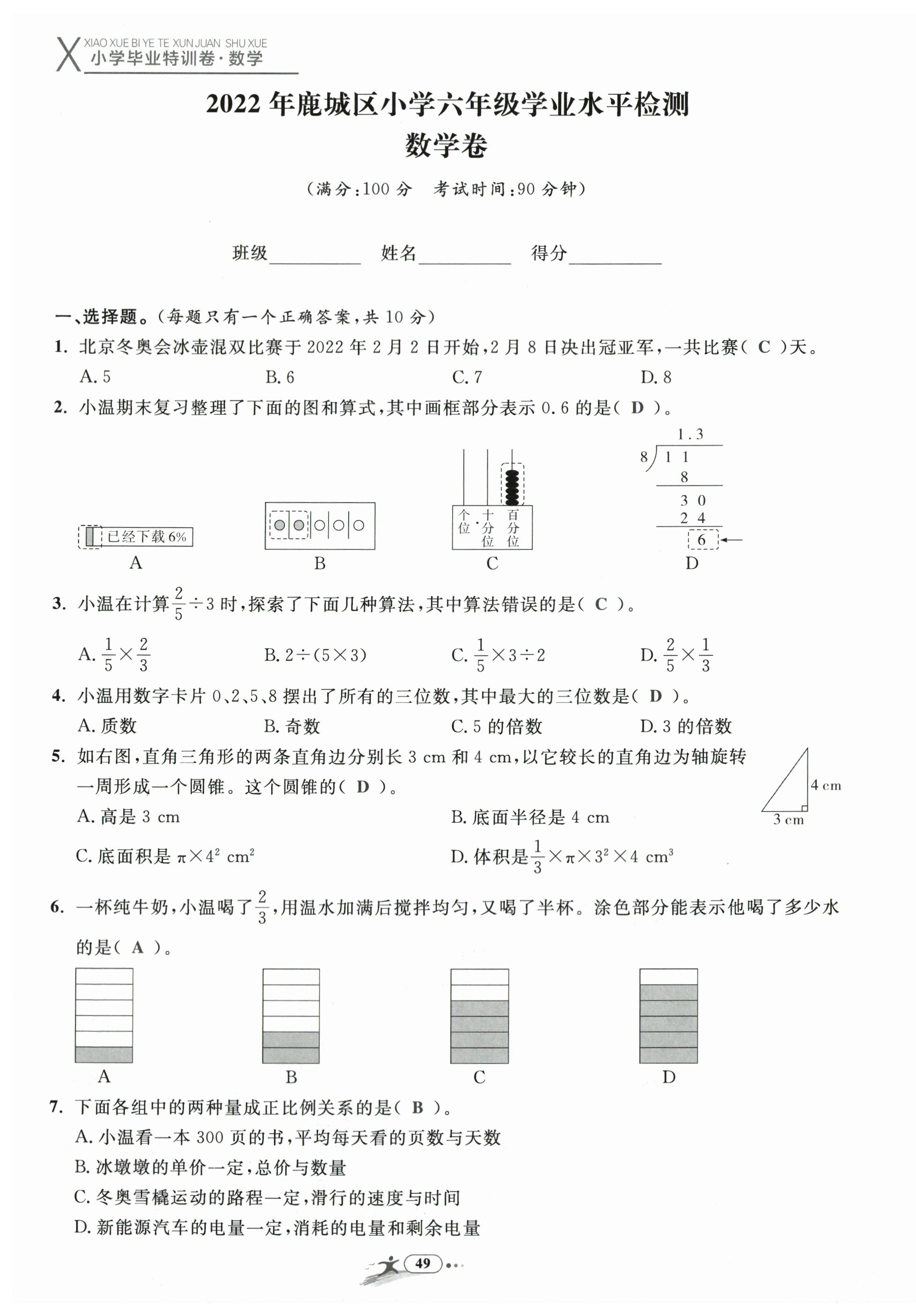 注:目前有些书本章节名称可能整理的还不是很完善,但都是按照顺序排列的,请同学们按照顺序仔细查找。练习册 2024年小学毕业特训卷数学温州专版 答案主要是用来给同学们做完题方便对答案用的,请勿直接抄袭。