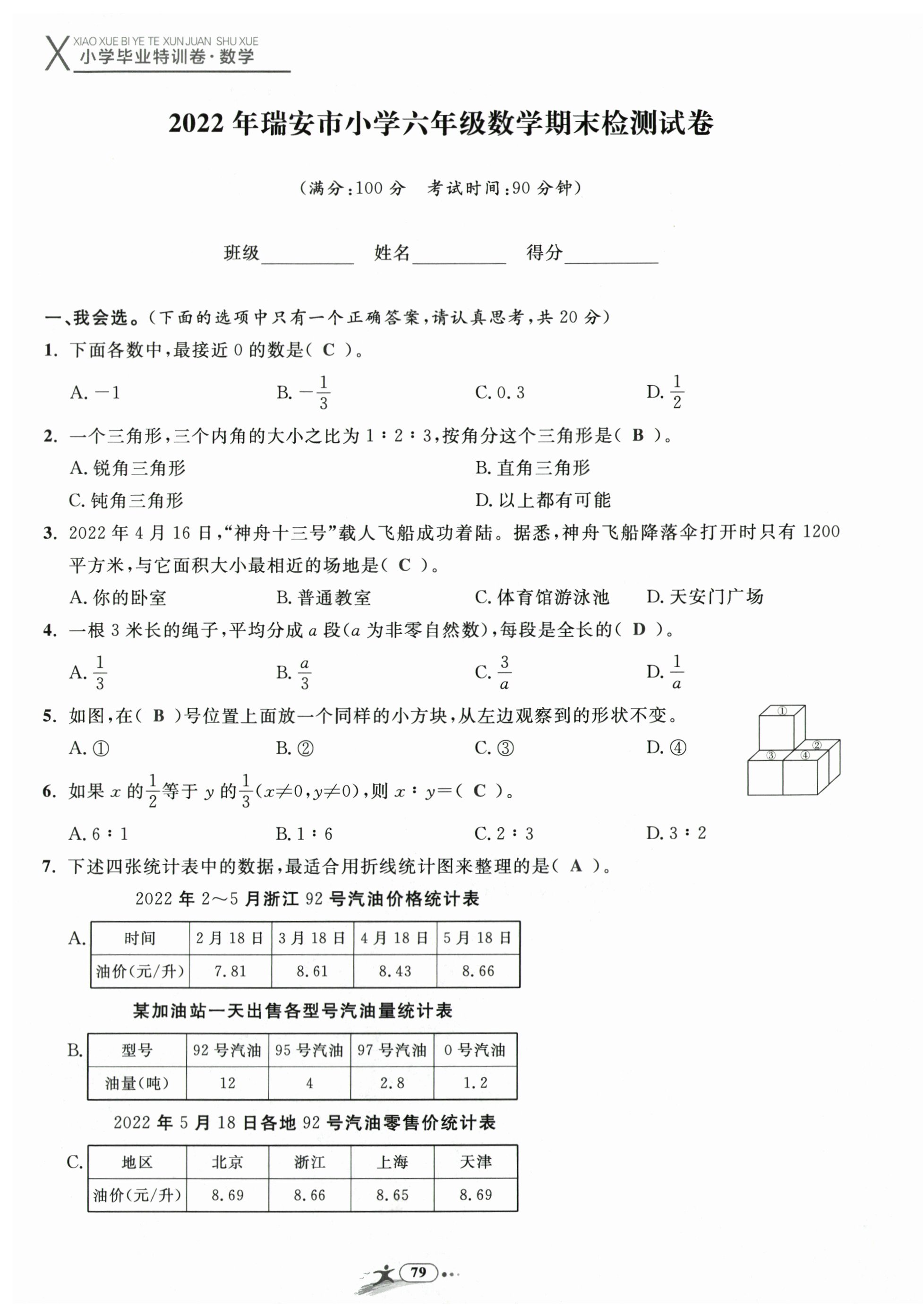 注:目前有些书本章节名称可能整理的还不是很完善,但都是按照顺序排列的,请同学们按照顺序仔细查找。练习册 2024年小学毕业特训卷数学温州专版 答案主要是用来给同学们做完题方便对答案用的,请勿直接抄袭。