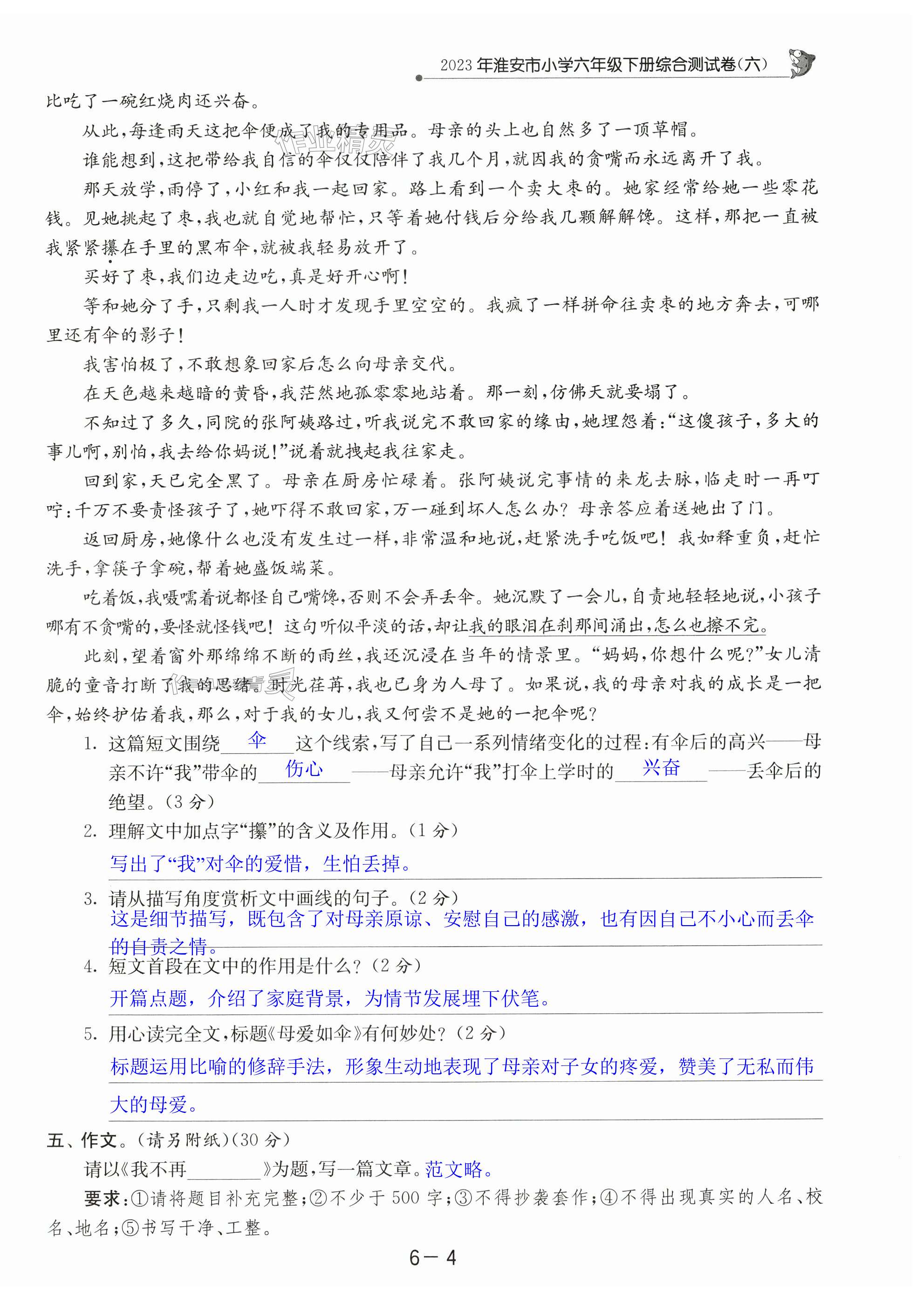 注:目前有些书本章节名称可能整理的还不是很完善,但都是按照顺序排列的,请同学们按照顺序仔细查找。练习册 2024年考必胜小学毕业升学考试试卷精选语文淮安专版 答案主要是用来给同学们做完题方便对答案用的,请勿直接抄袭。