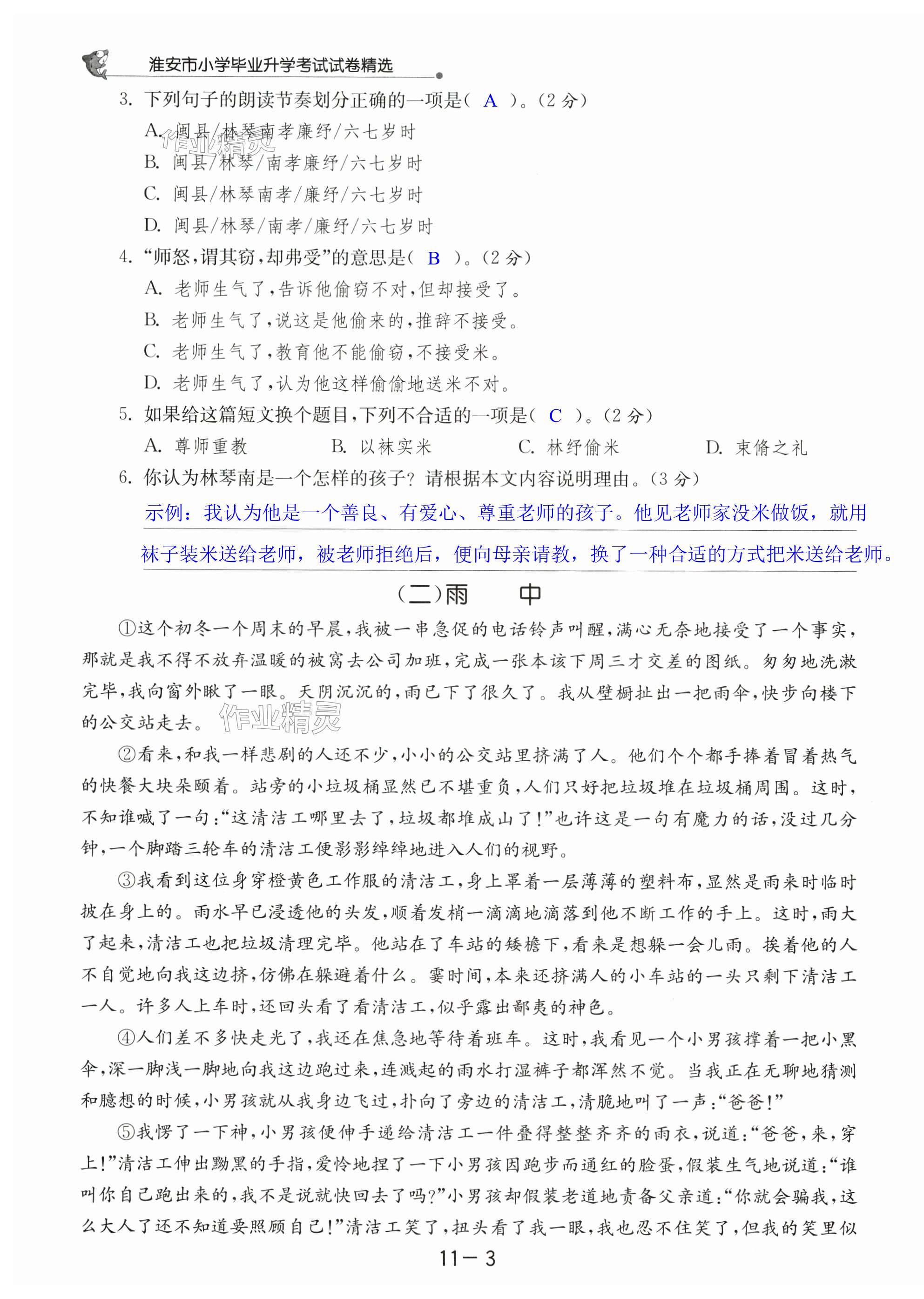注:目前有些书本章节名称可能整理的还不是很完善,但都是按照顺序排列的,请同学们按照顺序仔细查找。练习册 2024年考必胜小学毕业升学考试试卷精选语文淮安专版 答案主要是用来给同学们做完题方便对答案用的,请勿直接抄袭。