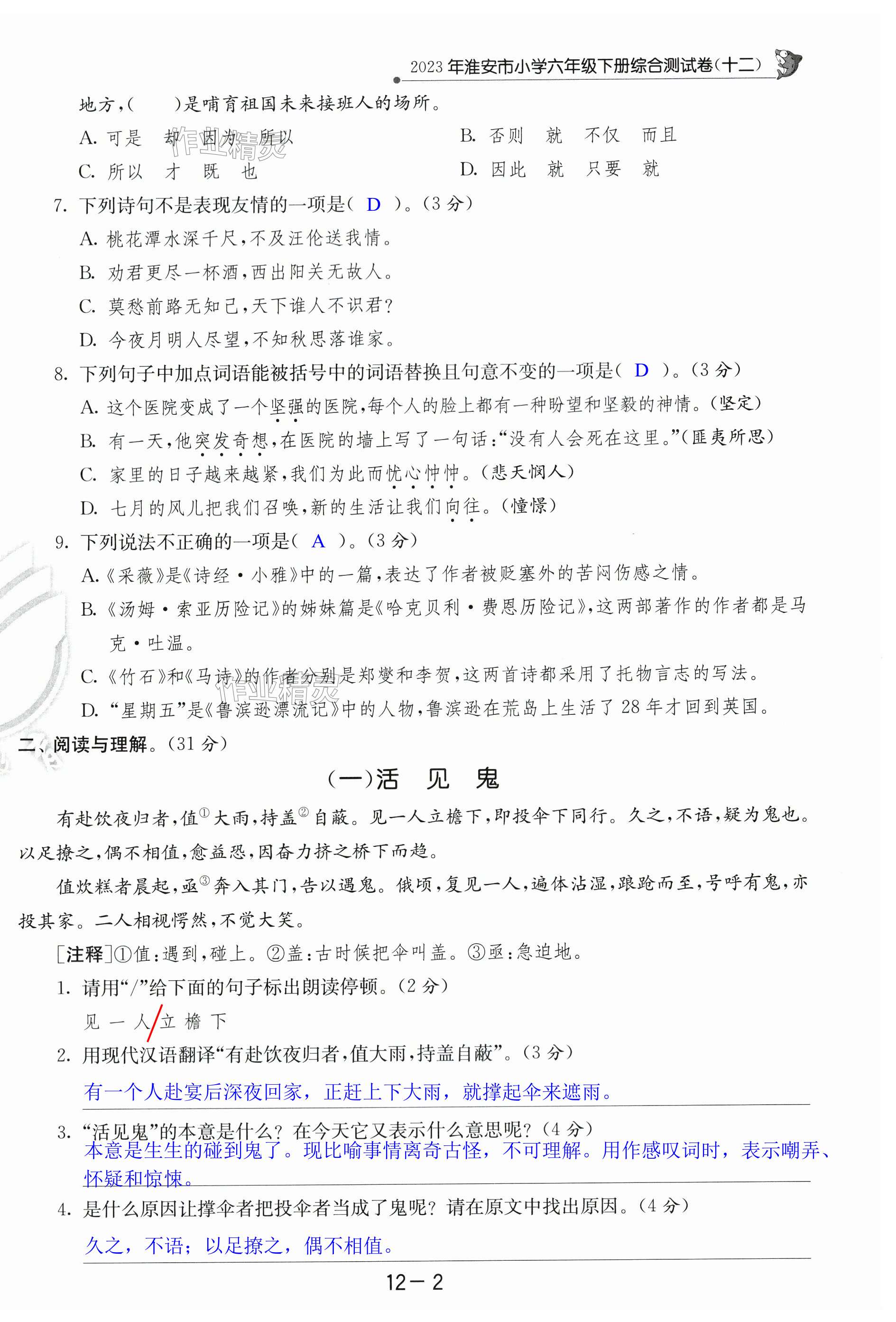 注:目前有些书本章节名称可能整理的还不是很完善,但都是按照顺序排列的,请同学们按照顺序仔细查找。练习册 2024年考必胜小学毕业升学考试试卷精选语文淮安专版 答案主要是用来给同学们做完题方便对答案用的,请勿直接抄袭。