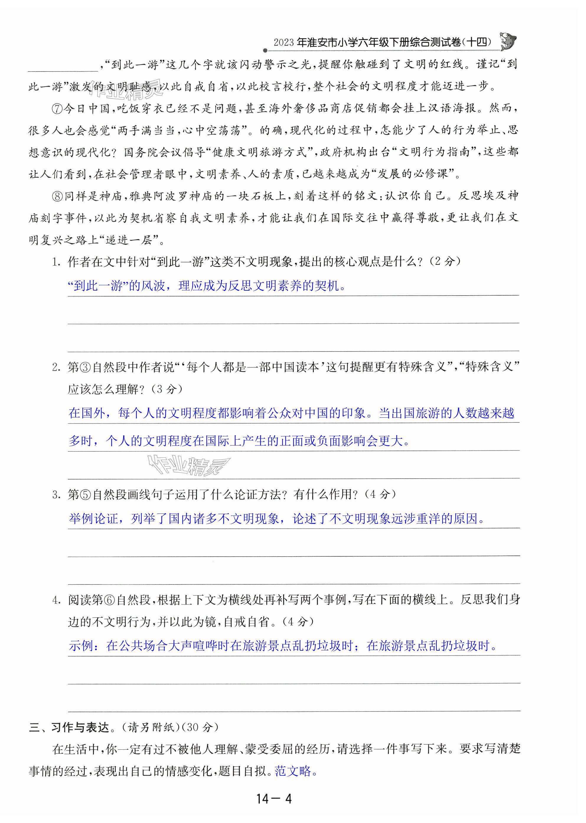 注:目前有些书本章节名称可能整理的还不是很完善,但都是按照顺序排列的,请同学们按照顺序仔细查找。练习册 2024年考必胜小学毕业升学考试试卷精选语文淮安专版 答案主要是用来给同学们做完题方便对答案用的,请勿直接抄袭。