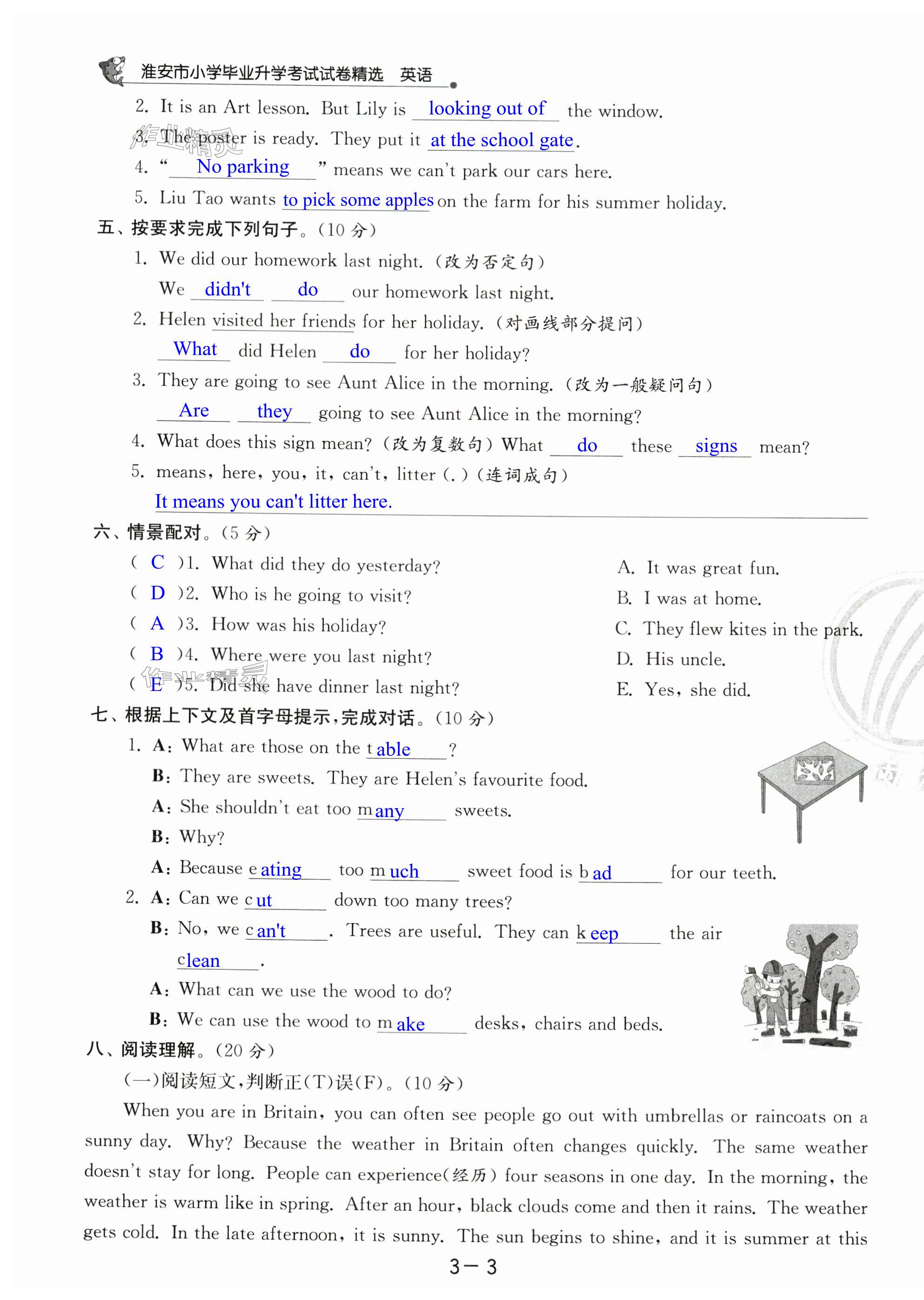 注:目前有些书本章节名称可能整理的还不是很完善,但都是按照顺序排列的,请同学们按照顺序仔细查找。练习册 2024年考必胜小学毕业升学考试试卷精选六年级英语淮安专版 答案主要是用来给同学们做完题方便对答案用的,请勿直接抄袭。