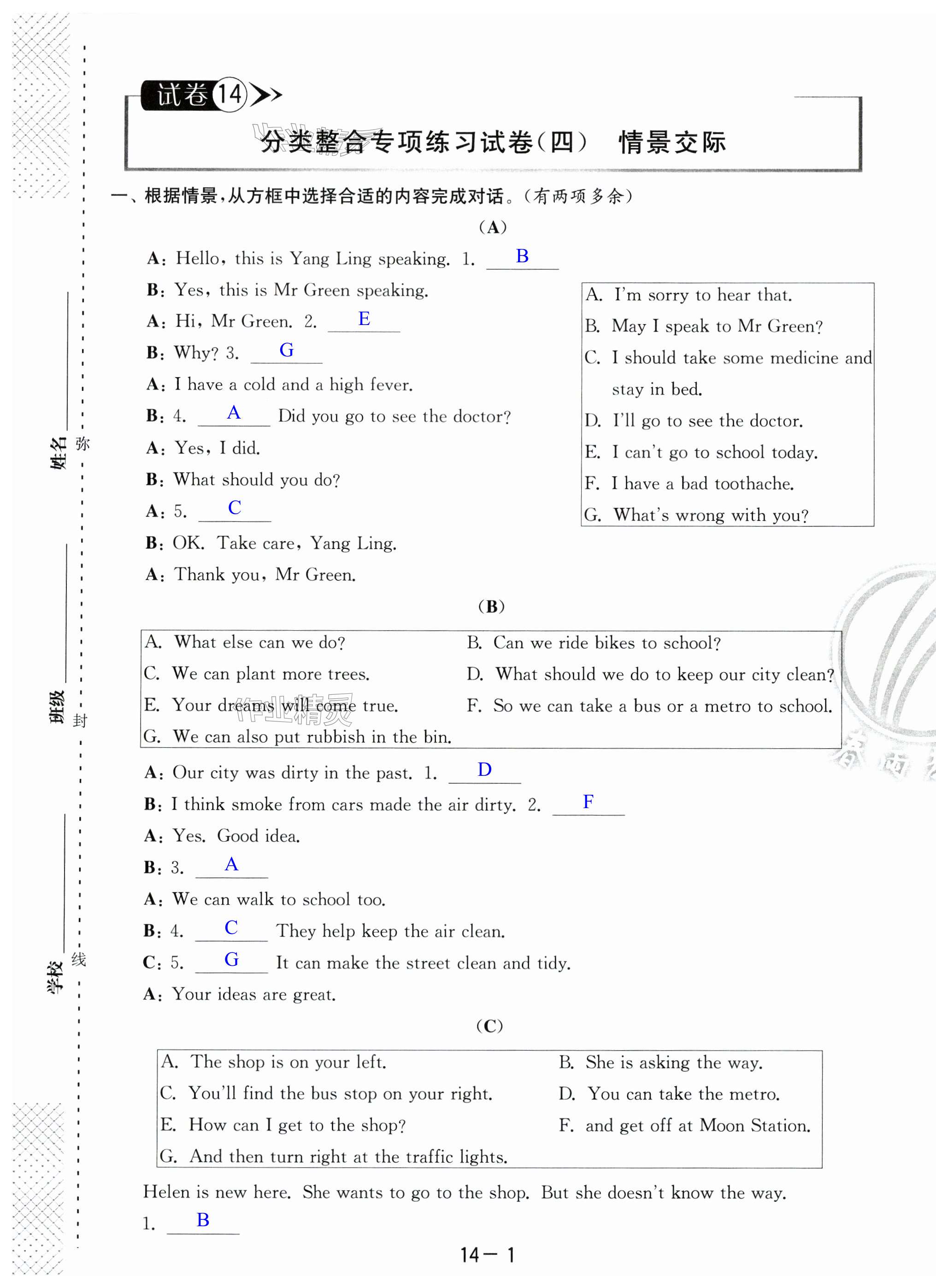 注:目前有些书本章节名称可能整理的还不是很完善,但都是按照顺序排列的,请同学们按照顺序仔细查找。练习册 2024年考必胜小学毕业升学考试试卷精选六年级英语淮安专版 答案主要是用来给同学们做完题方便对答案用的,请勿直接抄袭。