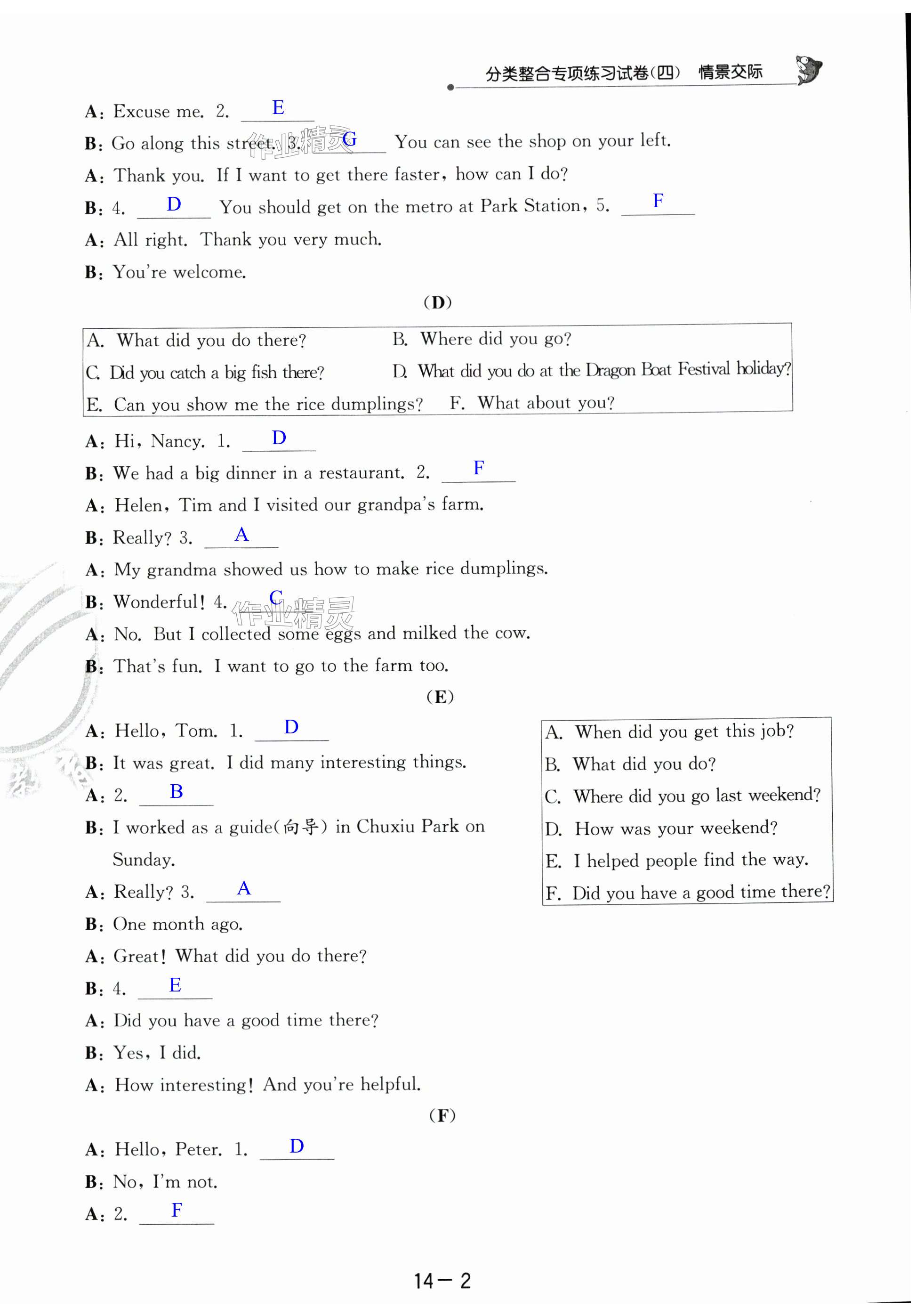 注:目前有些书本章节名称可能整理的还不是很完善,但都是按照顺序排列的,请同学们按照顺序仔细查找。练习册 2024年考必胜小学毕业升学考试试卷精选六年级英语淮安专版 答案主要是用来给同学们做完题方便对答案用的,请勿直接抄袭。